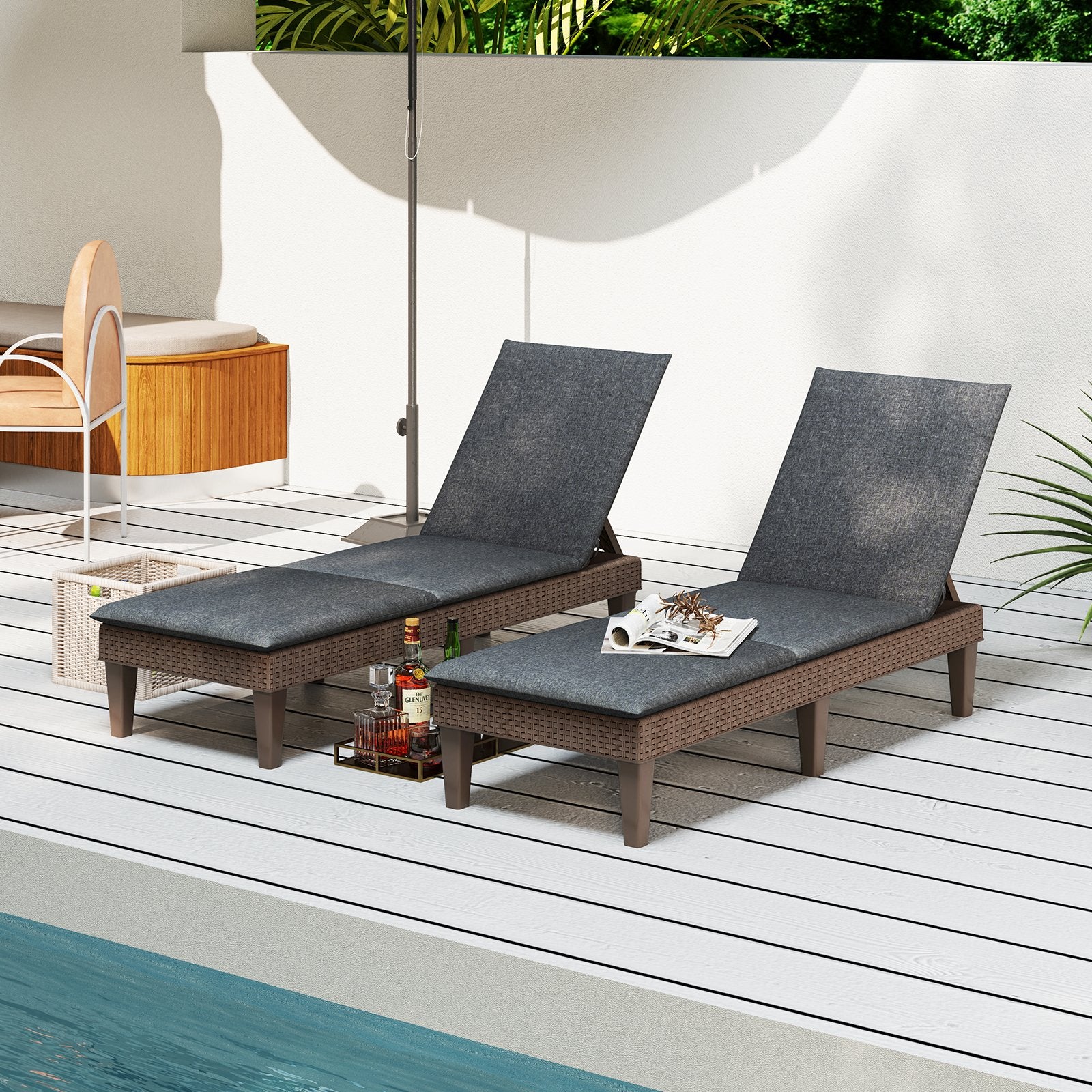 - Add Elegance to Your Outdoor Oasis: Elevate your outdoor space with the chic rattan texture of our chaise lounge chair. It will seamlessly blend into any outdoor setting from poolside to porch adding a touch of class and sophistication.