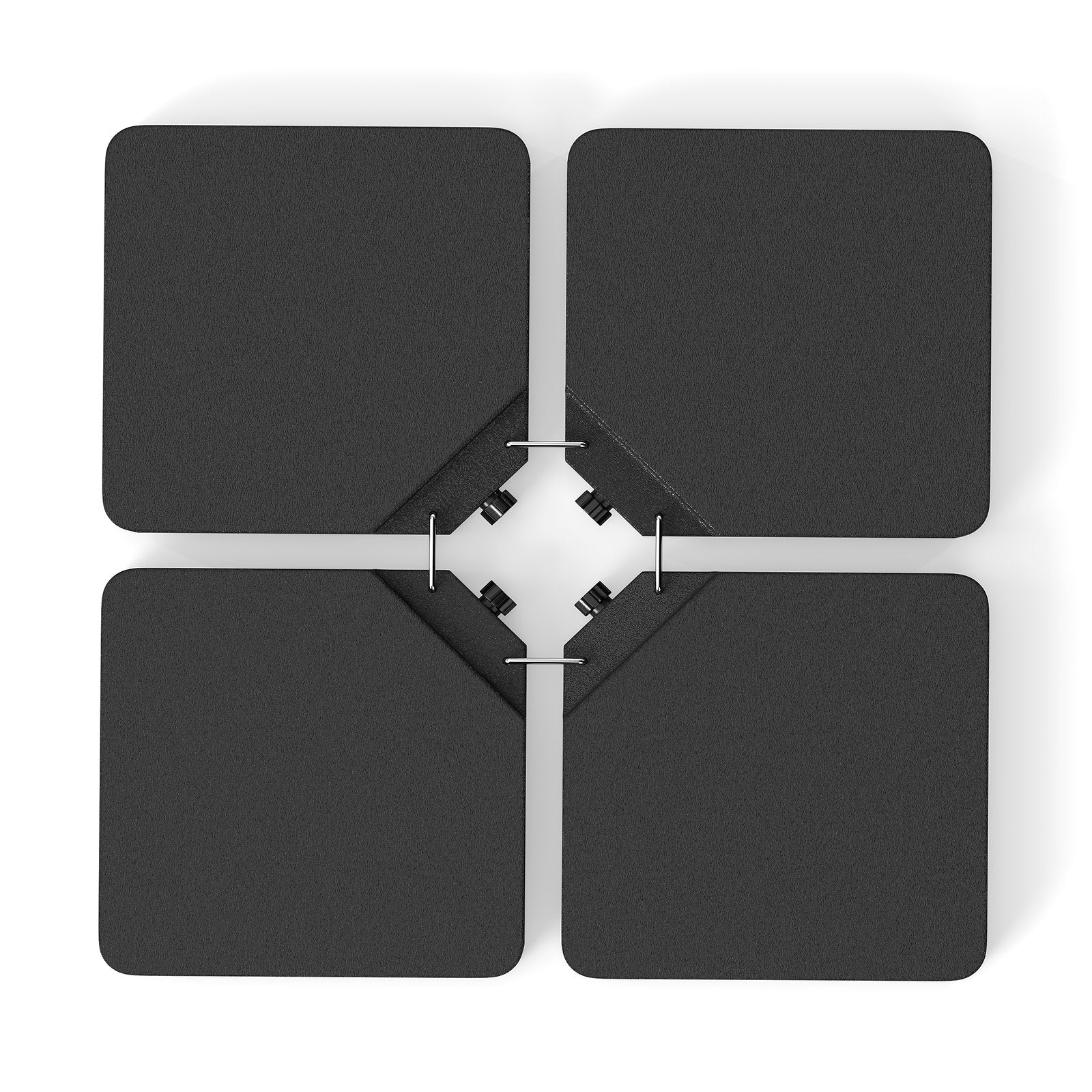 ● Robust 4-Piece Set: This patio offset umbrella base measures 40" x 40" x 2.5" and comes with 4 plates designed to securely hold your cantilever umbrella cross base (not included). Moreover 4 plates can be locked by 4 metal hooks enhancing overall stability.