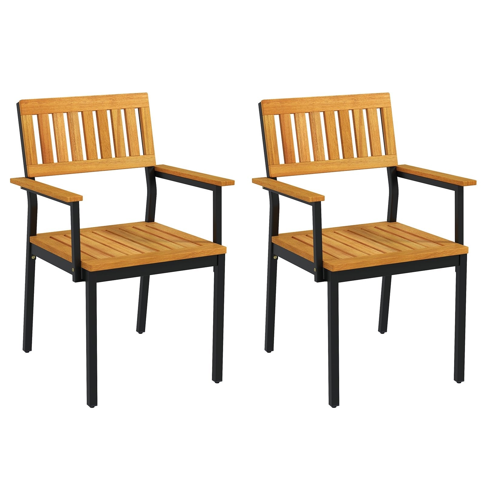Patio Outdoor Dining Chair Set of 2 with Metal and Acacia Wood Frame