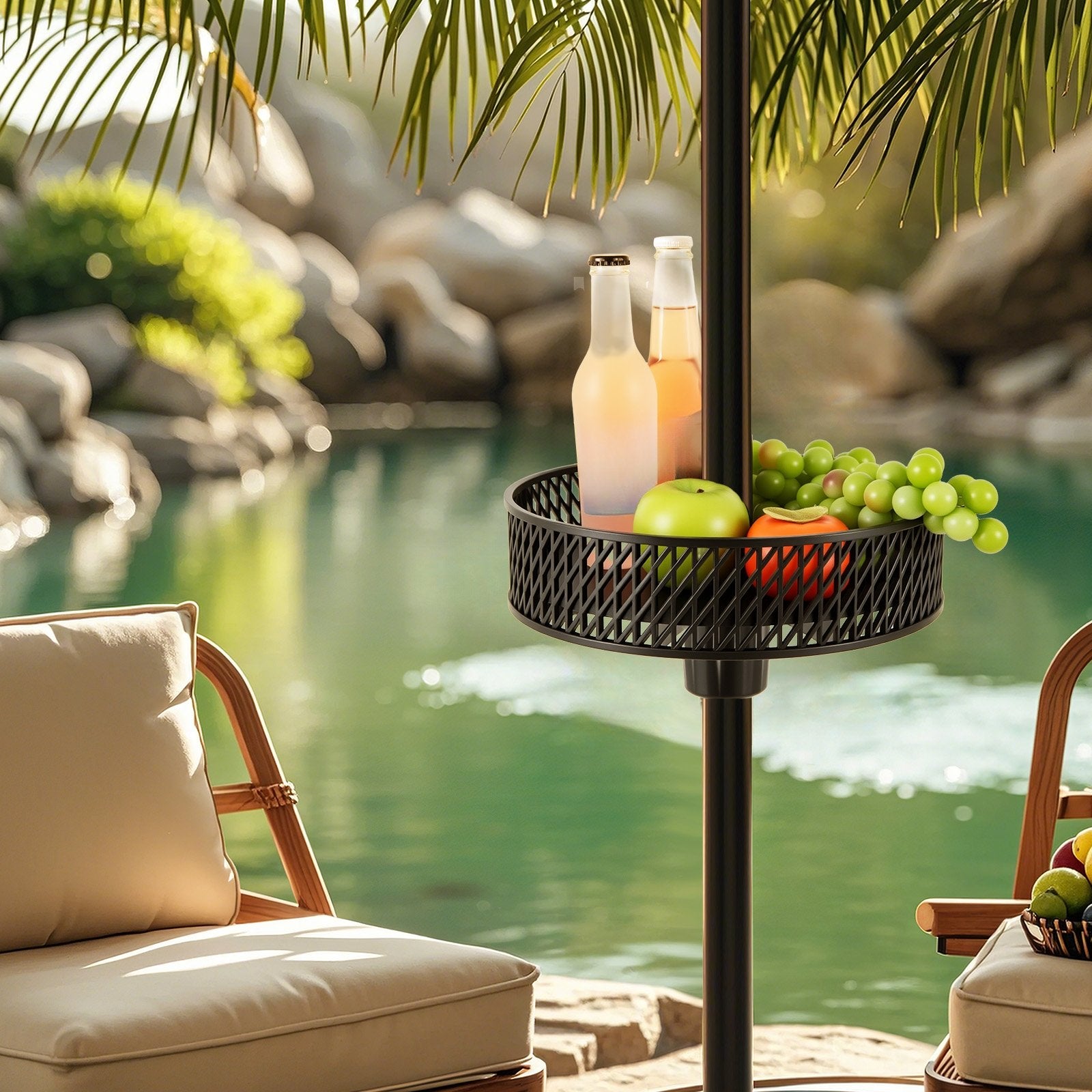 Patio Umbrella Table Tray Adjustable with Storage and Umbrella Poles-Black