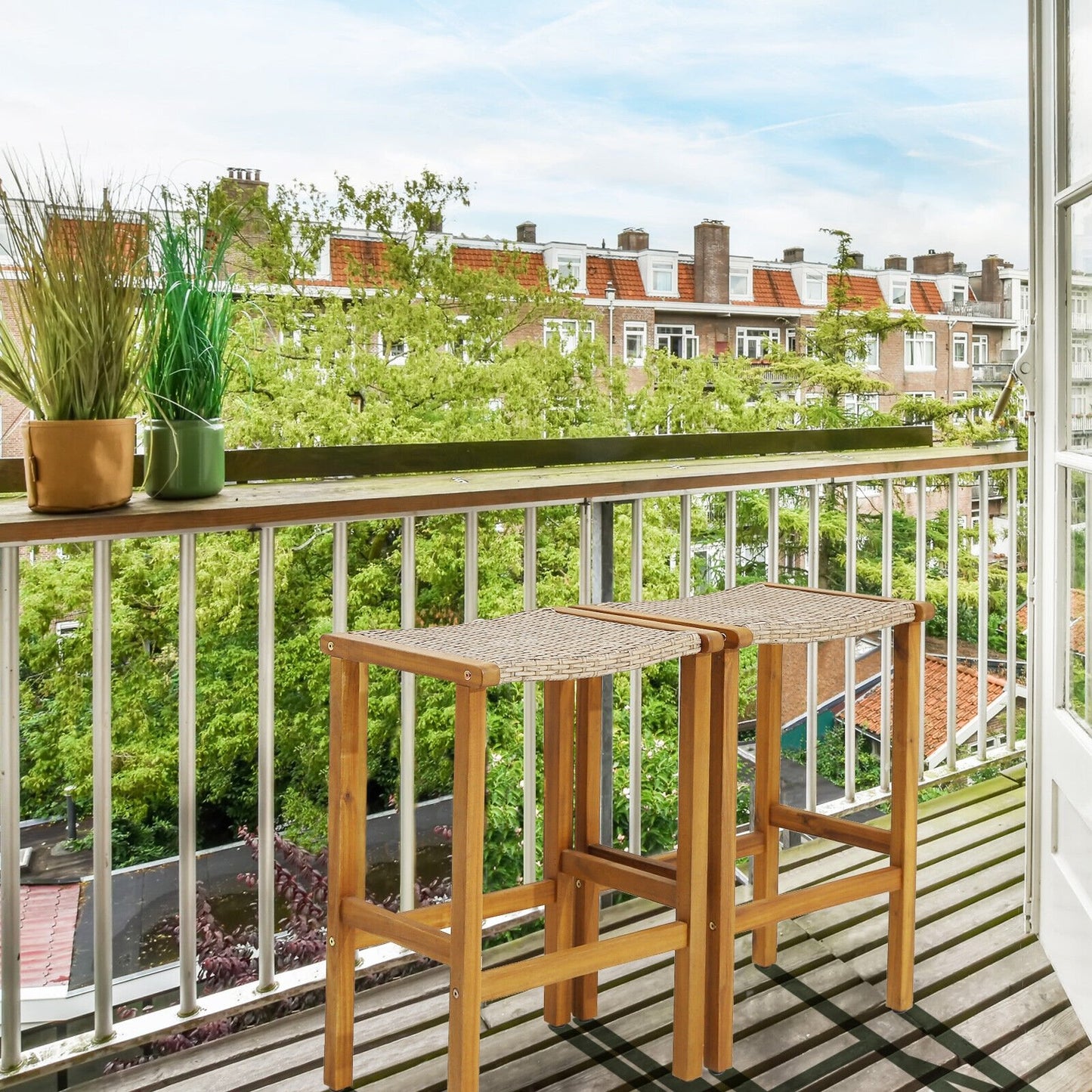 ● Robust Wood Structure: These 2/4 pieces of patio bar stools are firmly supported by a high-grade acacia wood frame which is high-strength for long-time use. Also the teak-coated surface is burr-free and looks natural.