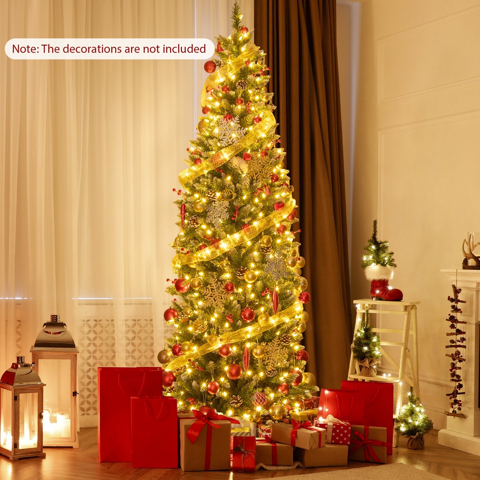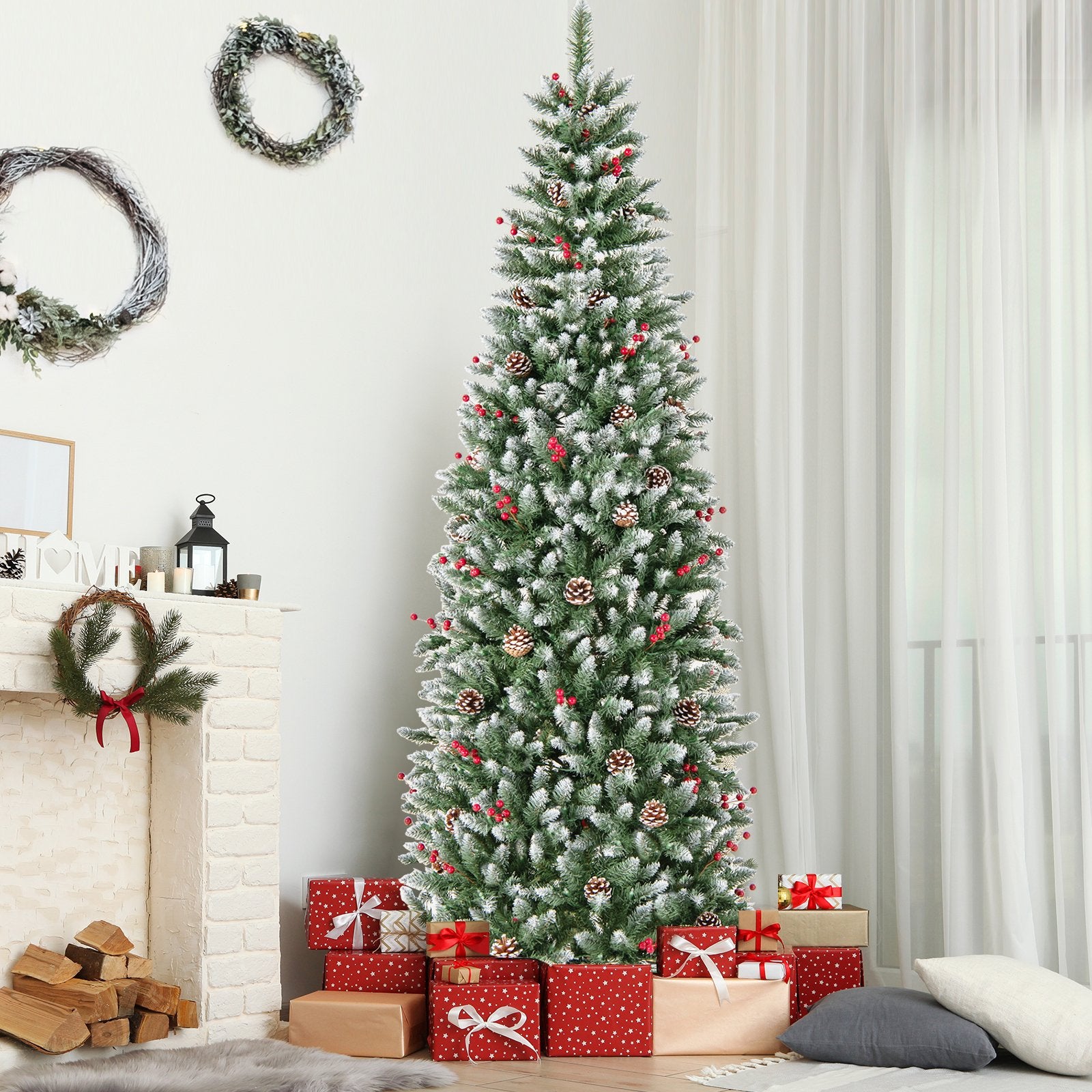 Pre-lit Artificial Pencil Christmas Tree with Pine Cones and Red Berries-7 ft