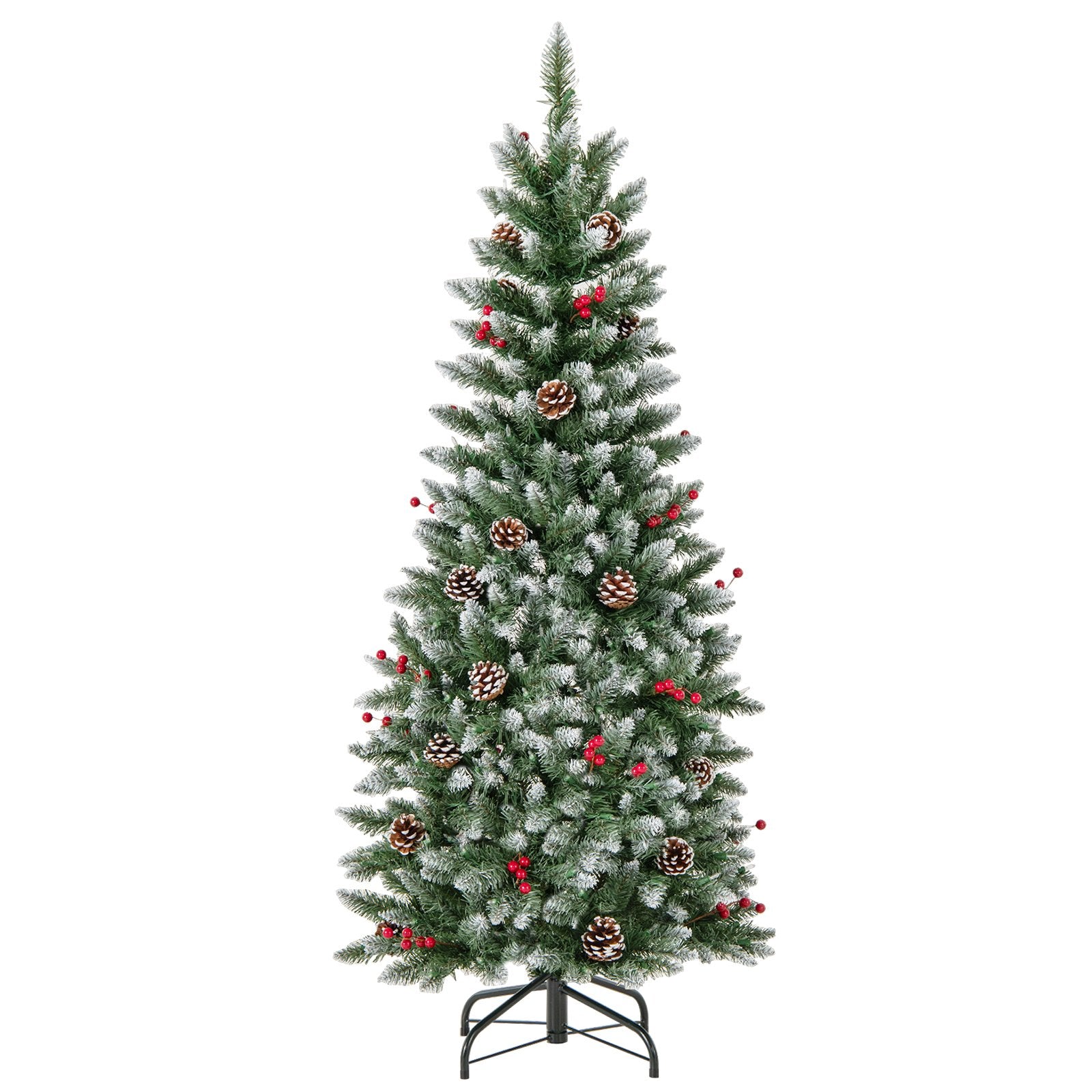 ● Realistic and Dense Branch Tips: With 408 branch tips this pencil Christmas tree looks lush and full from near and far highly restoring the appearance of a real tree. There are lots of pine cones and red berry clusters decorated among the branches making it more vivid and attractive. All tips are sprayed with snow to create a feeling of winter in your house.