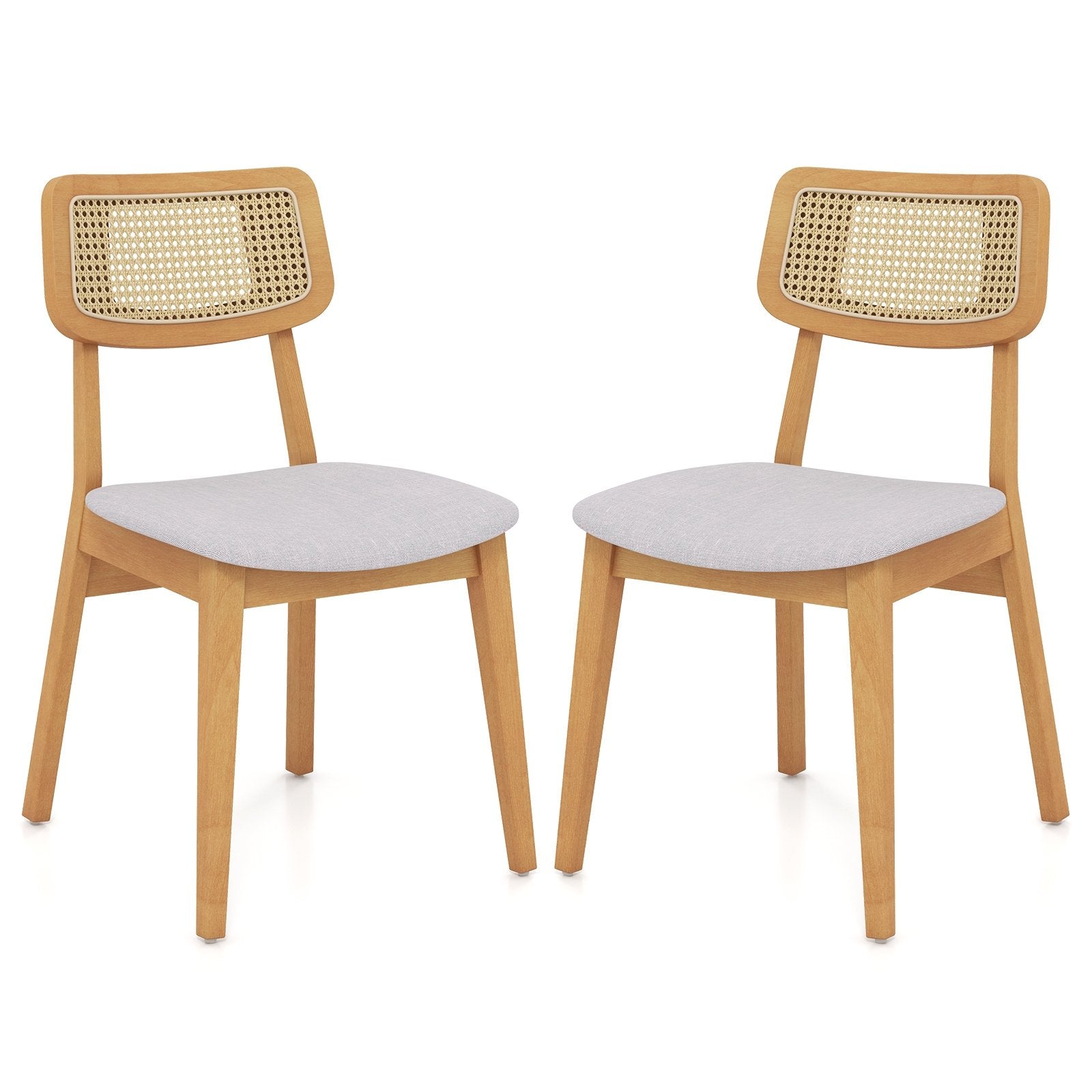 Rattan Dining Chair Set of 2 with Can Back and Rubber Wood Frame-Natural