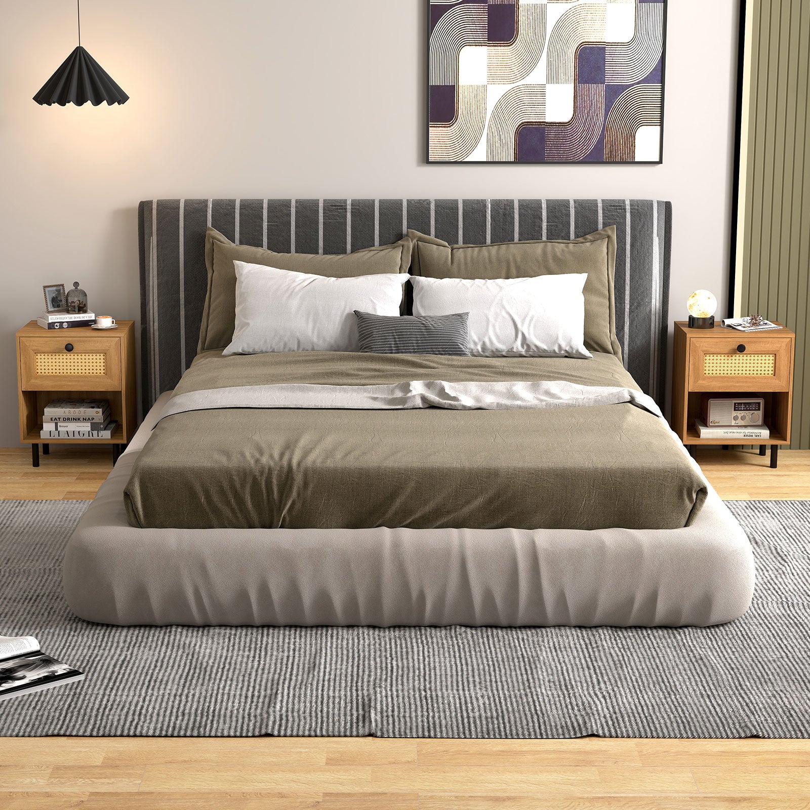 ● Rattan nightstand with oak wood grain for a bohemian touch