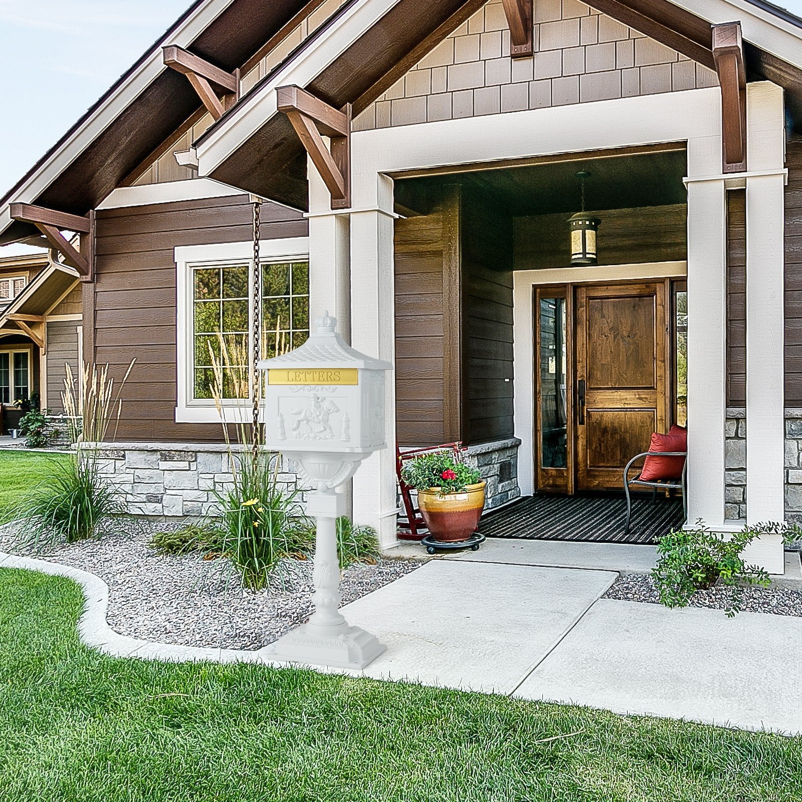 ● Retro Mid-Century Style: With decorative small roofs relief patterns on the sides and columns with floral patterns the retro mid-century postal mailbox creates a luxurious and elegant appearance which can be a charming scenery to your yard.