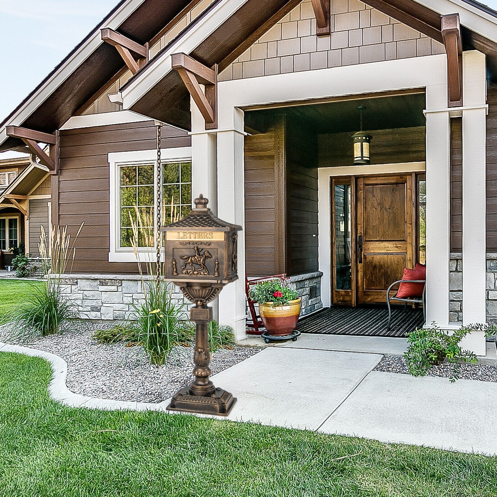 ● Sturdy Construction: The heavy-duty mailbox is constructed of 100% cast aluminum which is characterized by high strength corrosion resistance and water resistance ensuring long-time outdoor use. It can also increase the luster of the appearance.