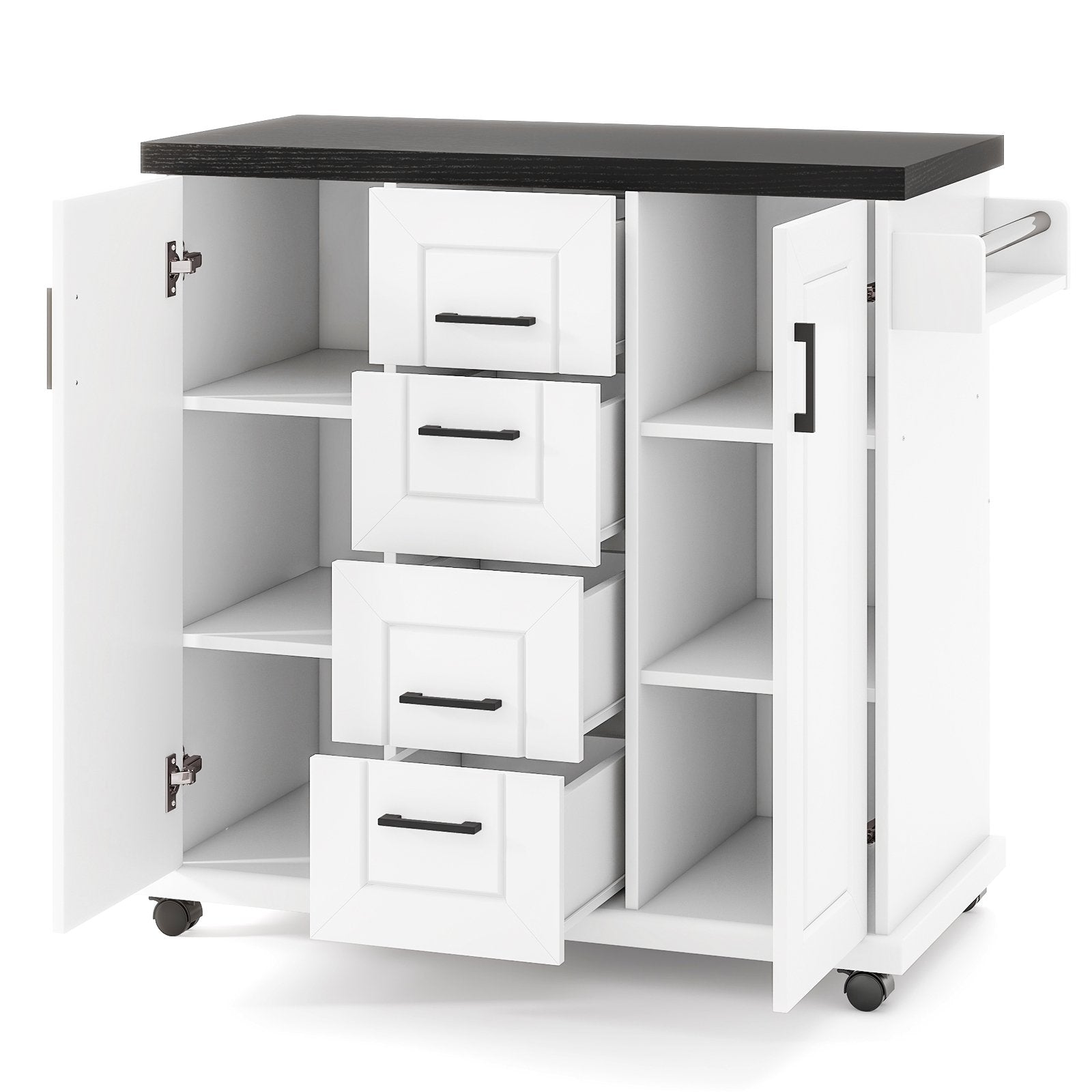 Rolling Kitchen Island Cart on Wheels with Storage Cabinets-White