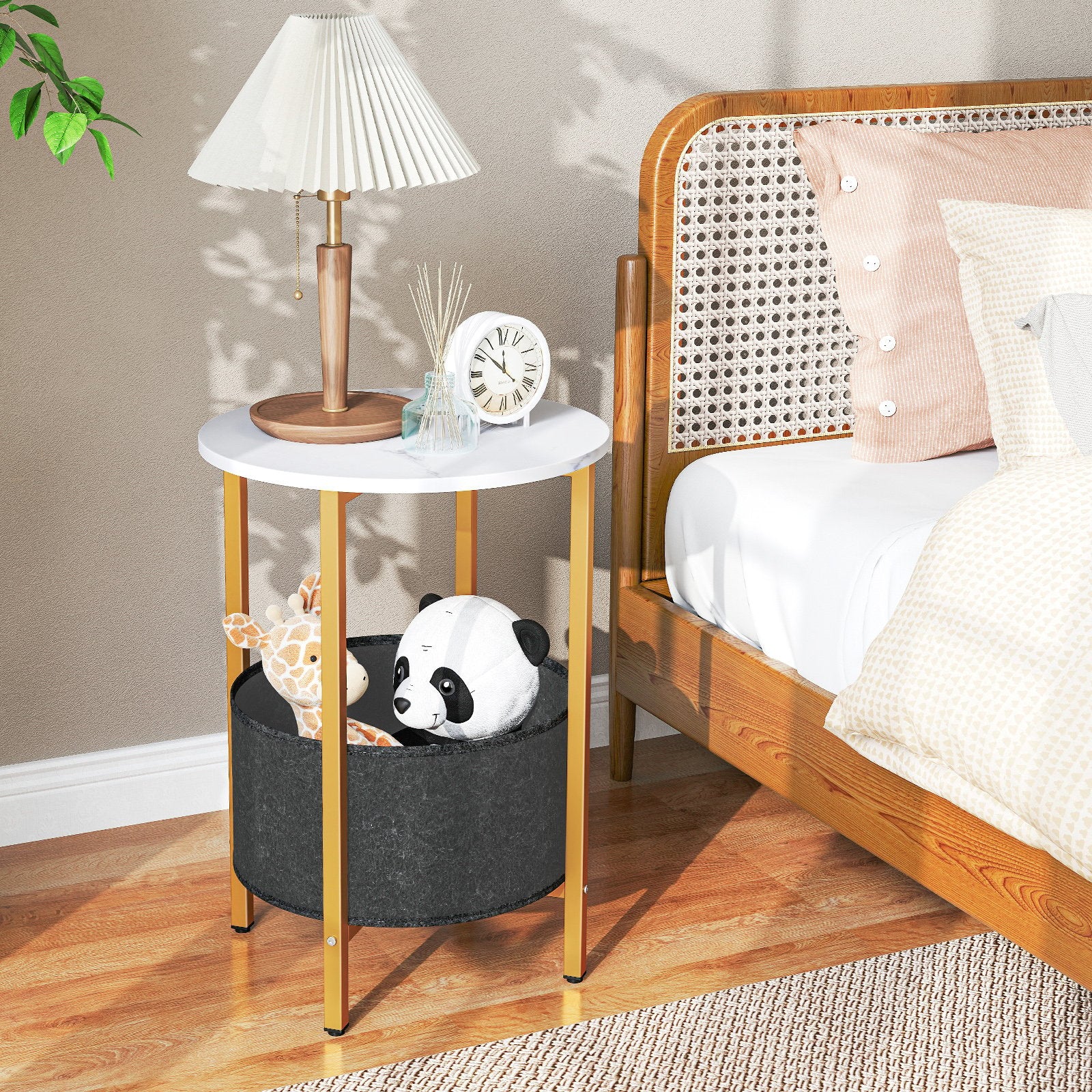 Round End Table 2-Tier Side Table with Removable Fabric Basket and Metal Frame-Rustic Brown
