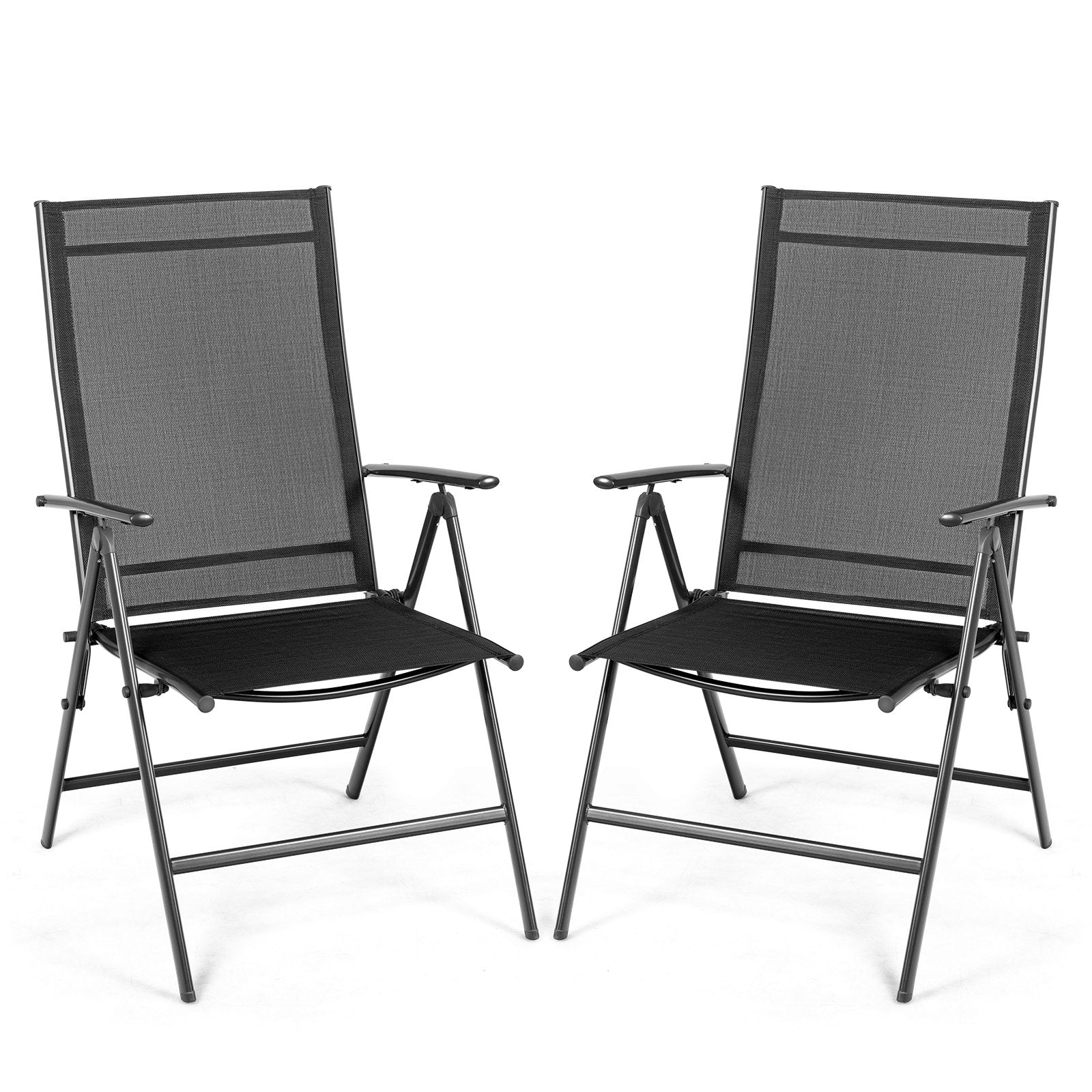 Set of 2 Adjustable Portable Patio Folding Dining Chair Recliners-Black