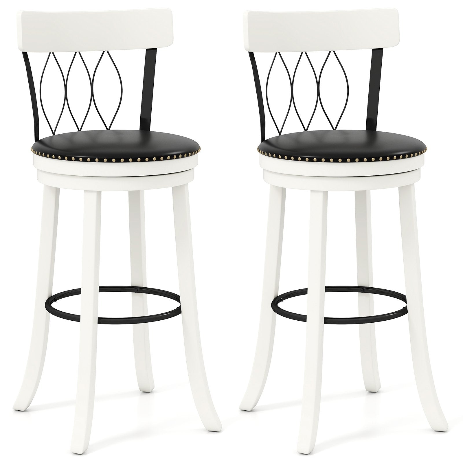 Set of 2 Bar Stools Swivel Bar Chairs with Footrest Rubber Wood Frame and Tufted Rivets-26 inches