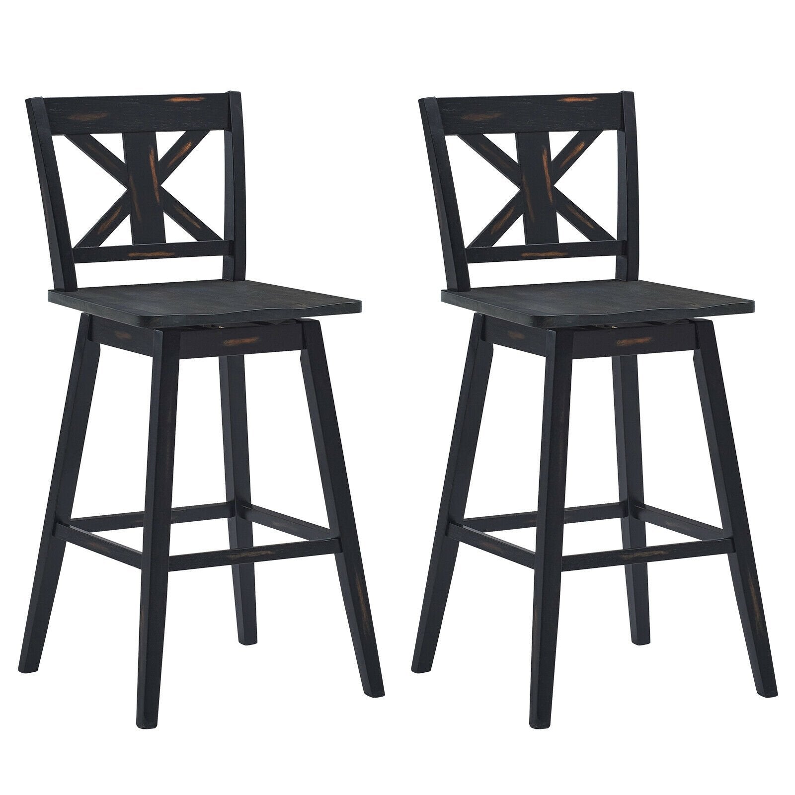 Set of 2 360-Degree Swivel Bar Stools for Home Restaurant-Black