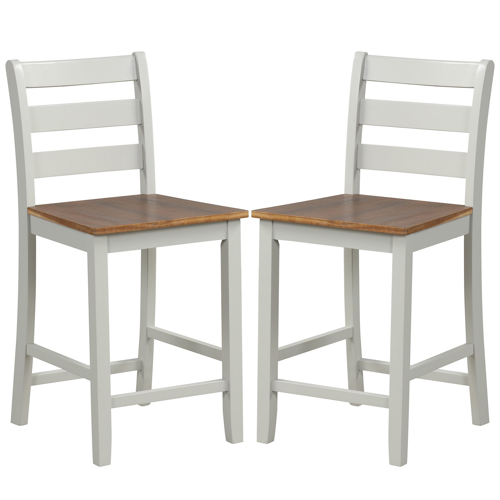 Set of 2 Counter Bar Stool with Inclined Backrest and Footrest-Gray