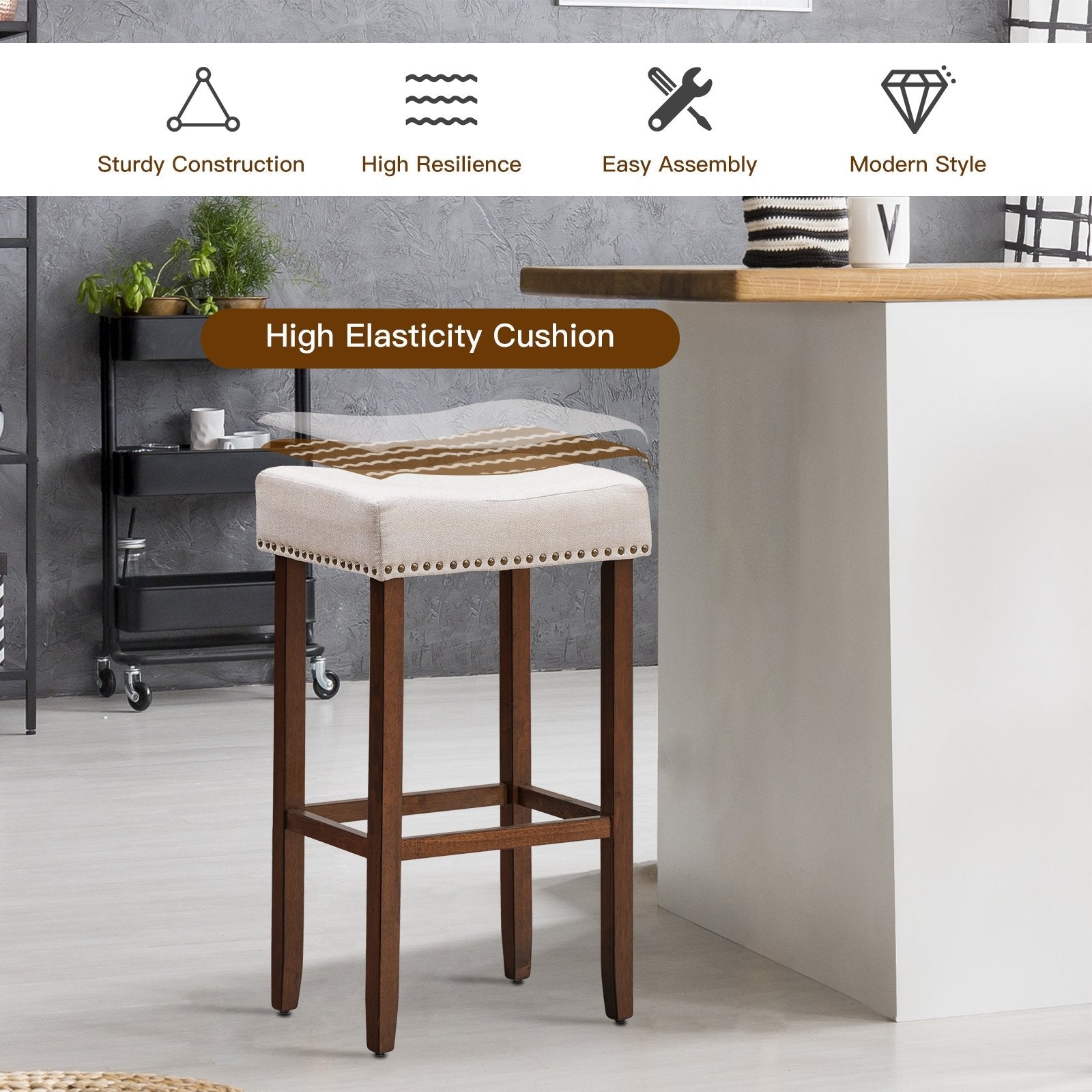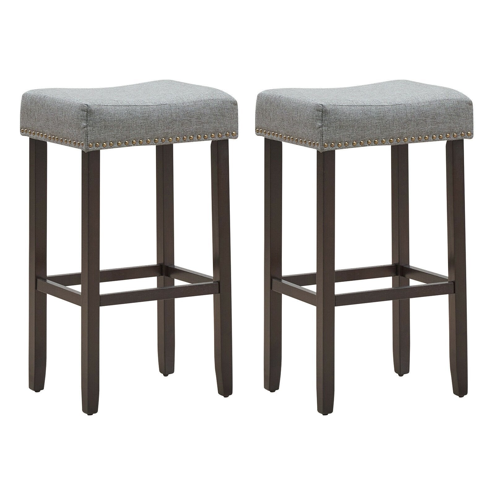 Set of 2 Nailhead Saddle Bar Stools 29 Inch Height