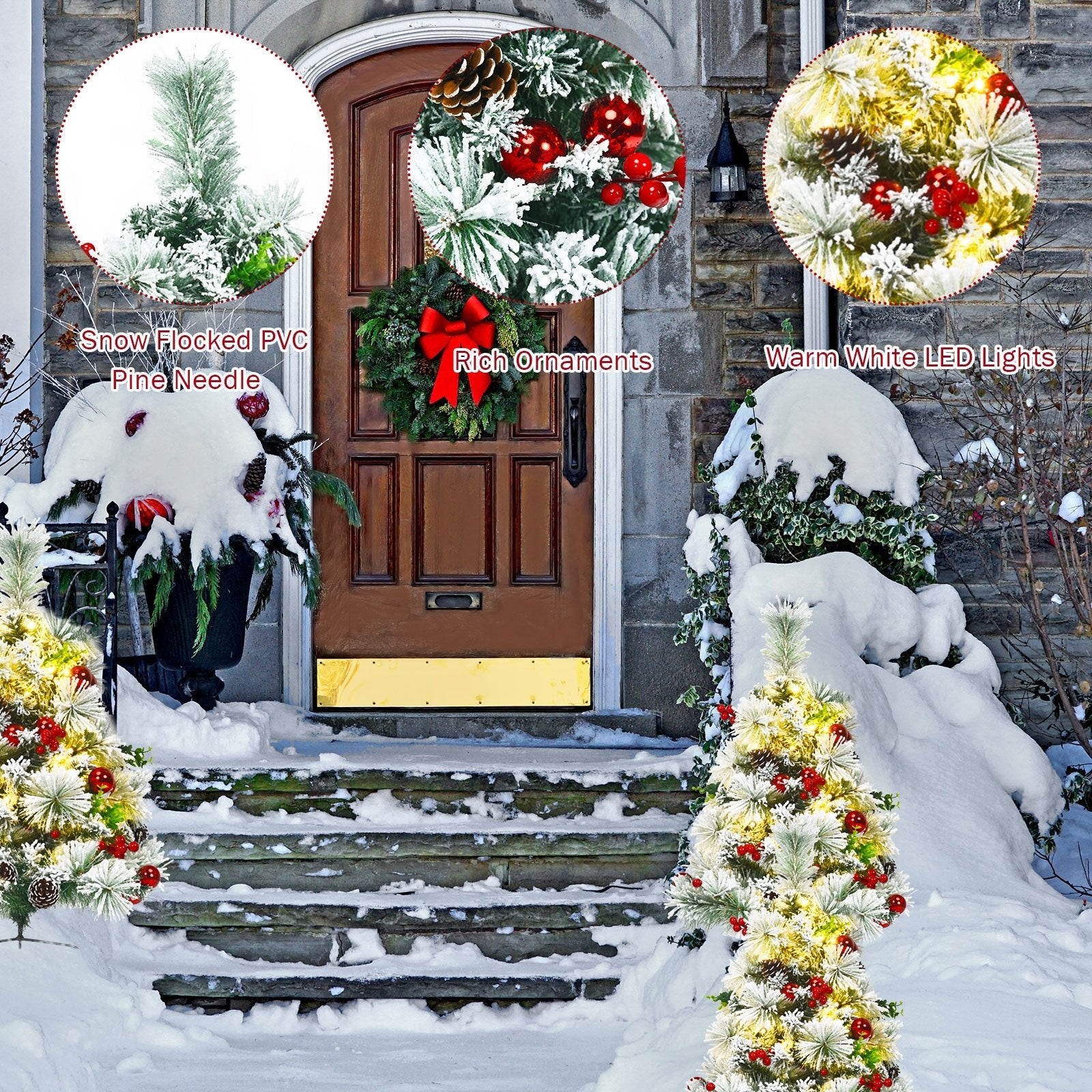 ● Lifelike Christmas Pine Tree: The realistic Christmas tree decorated with white floss to help emulate a real Christmas tree in the snowy weather. It is also accented with vivid pinecones berries and glimmering red balls. The 2ft mini size design is lightweight and easy to move and carry making it an ideal decoration for garden and pathway.