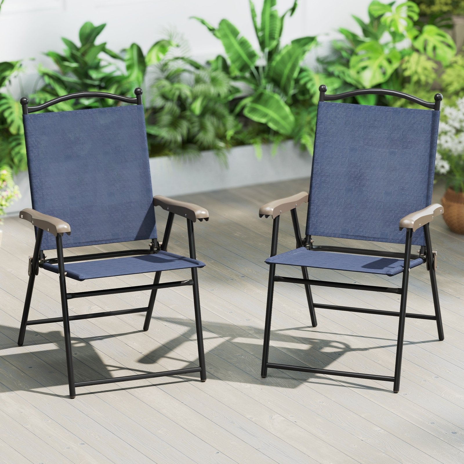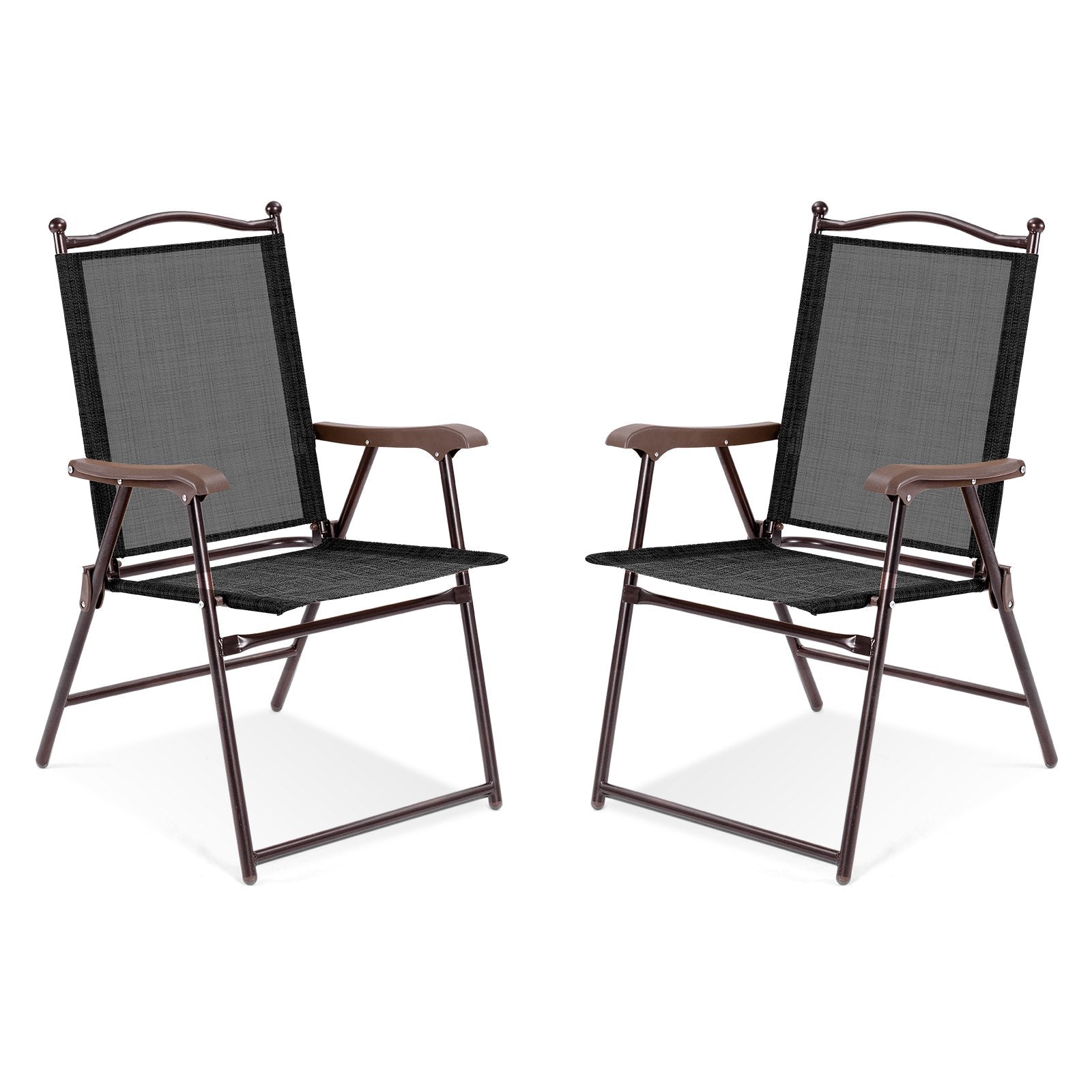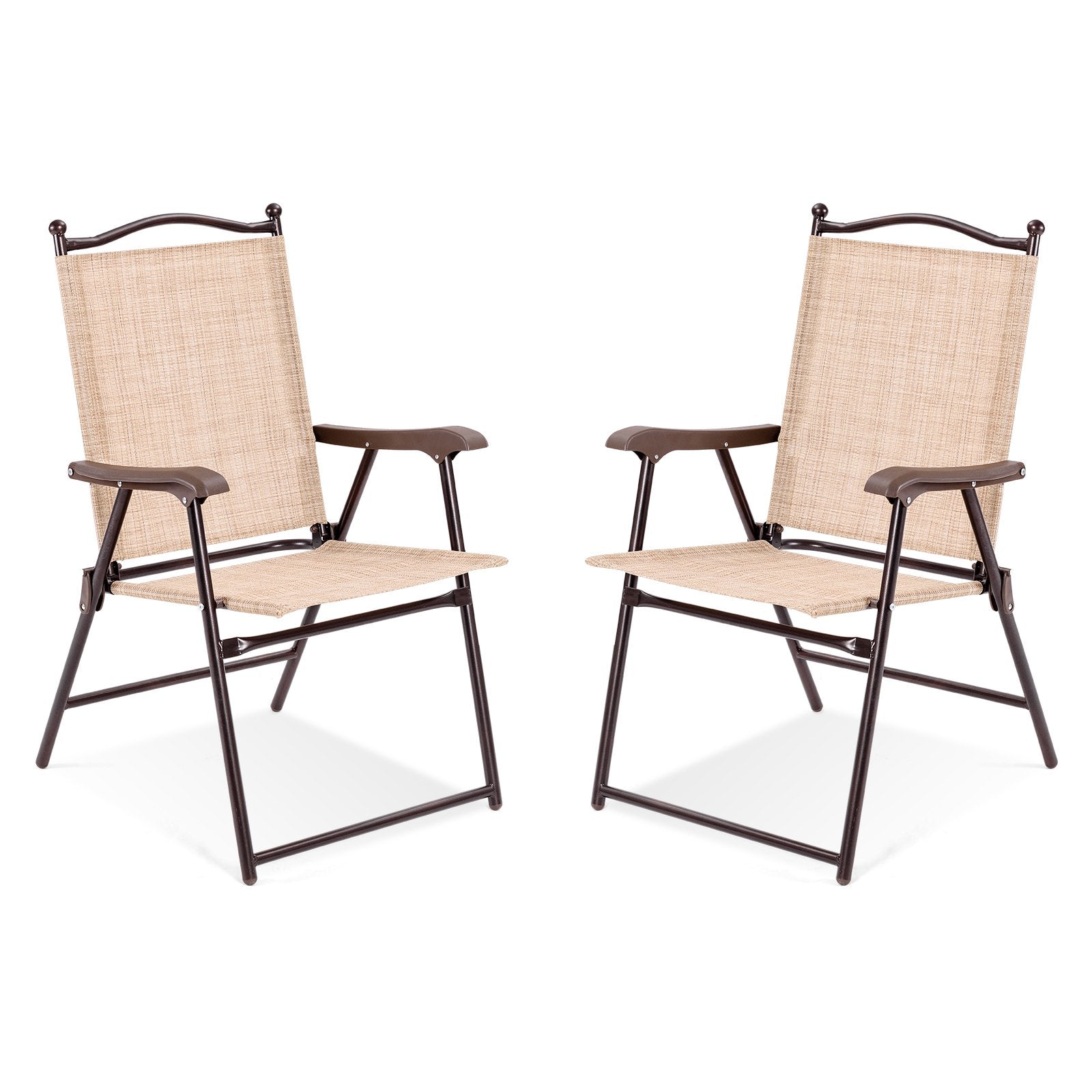 Set of 2 Patio Folding Sling Back Camping Deck Chairs-Beige