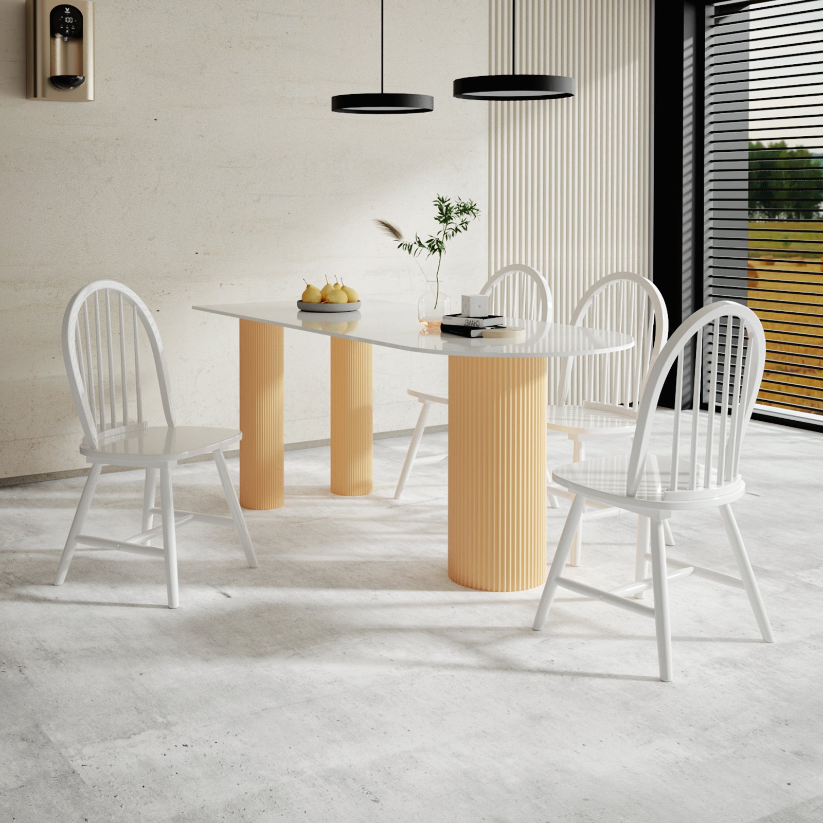 High-quality rubberwood and solid connection ensure stability and durability for long-time use. The curved backrest is ergonomically designed for offering strong support and relieving your back fatigue. In addition the widened seat effectively distributes the pressure to provide a more relaxed seating feeling which allows you to sit for a long time without feeling uncomfortable. Then you can sit down and enjoy afternoon tea at leisure. With a simple and elegant style this dining chair set will be eye-catching in your home.