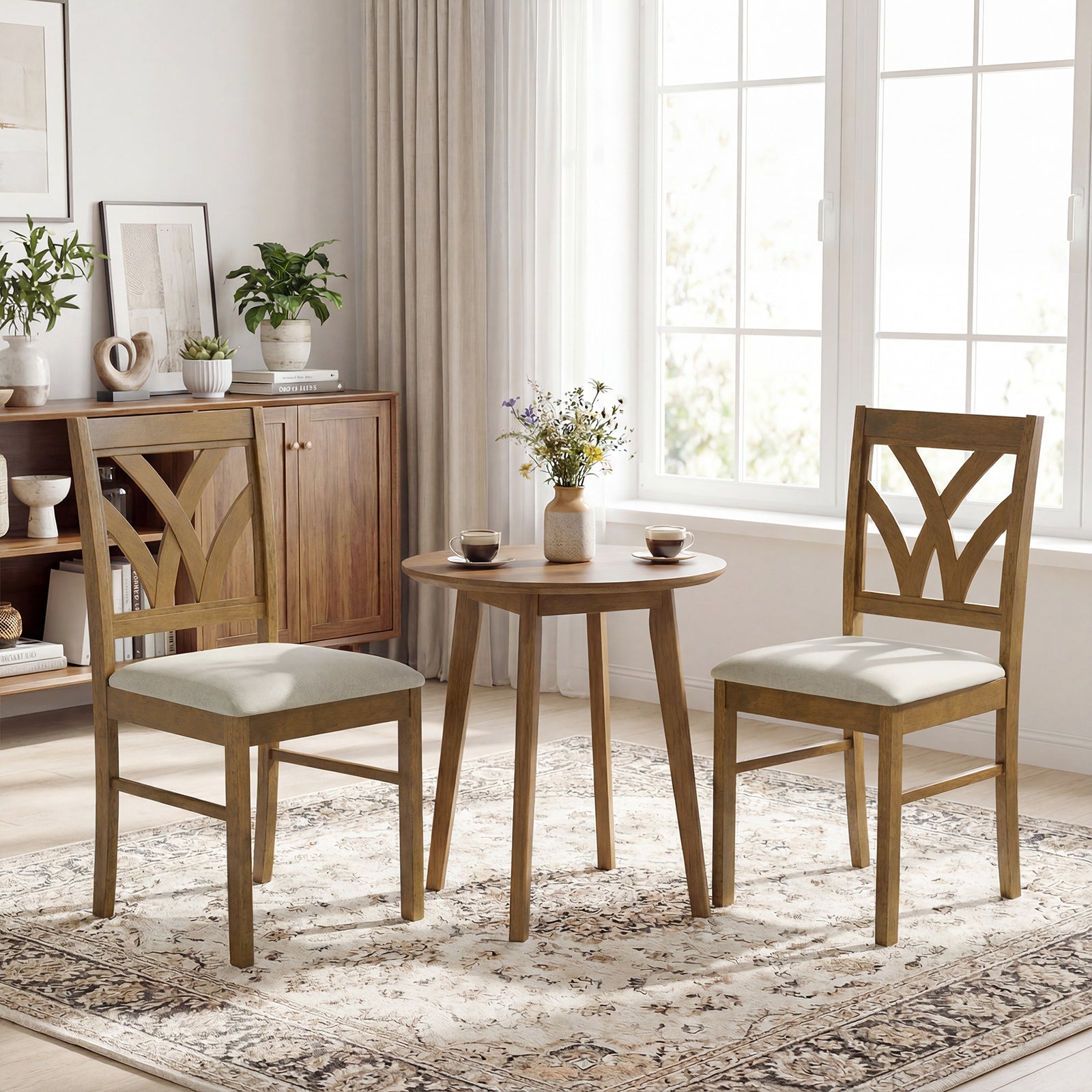 Set of 2 Wooden Dining Chairs Upholstered with Hollowed Backrest and Soft Padded Seat-Brown