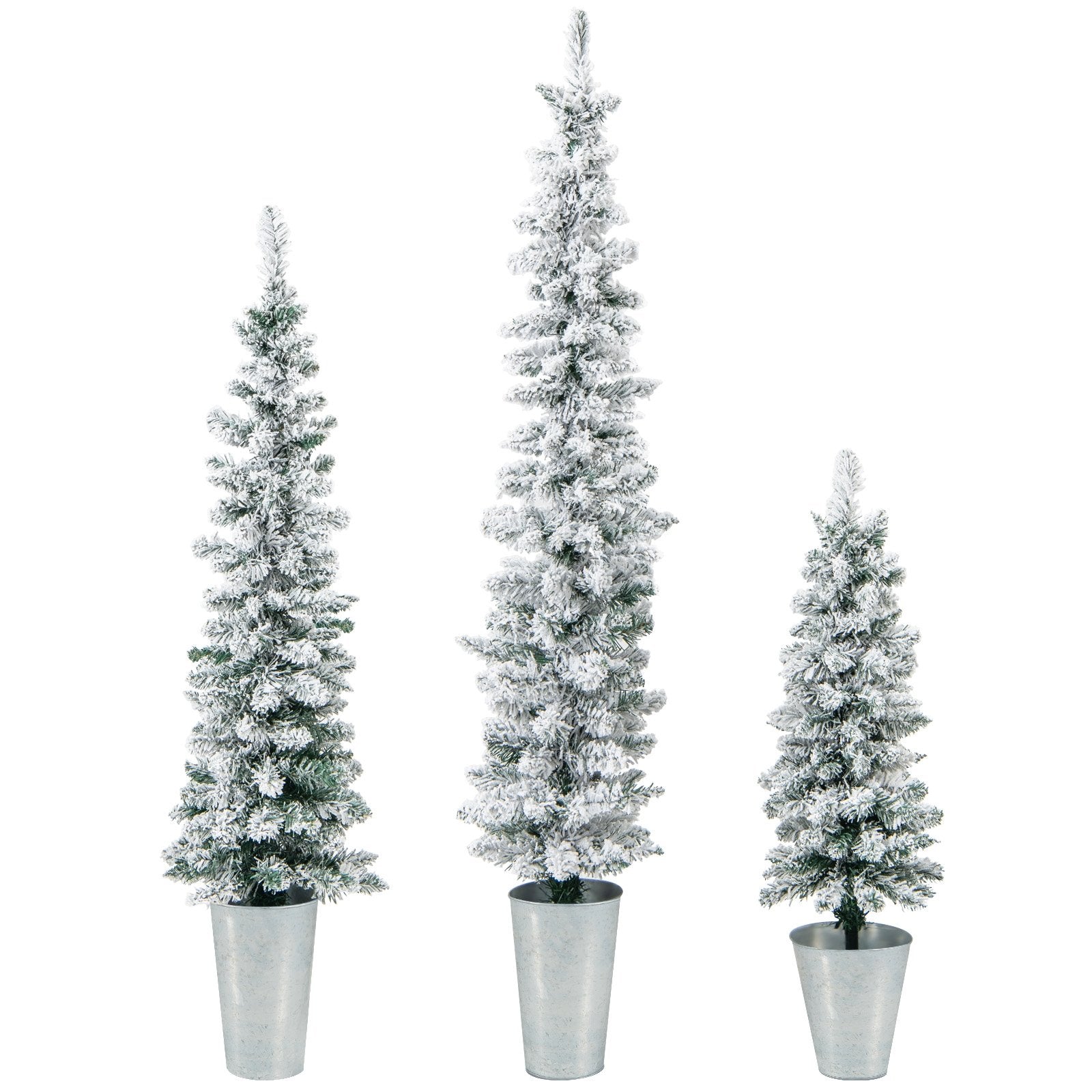 Set of 3 Potted Artificial Christmas Tree Snow-Flocked