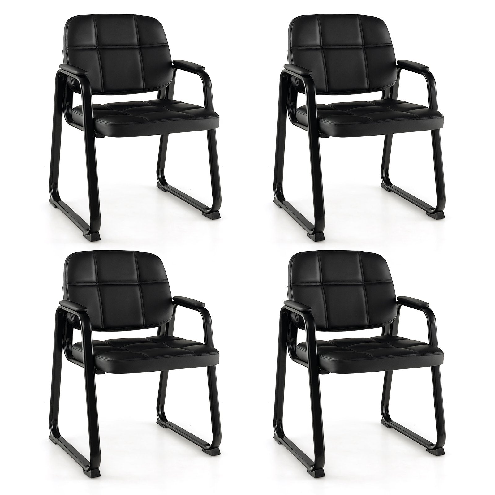 Set of 4 Upholstered Waiting Room Chair with Armrest and Ergonomic Backrest-Black
