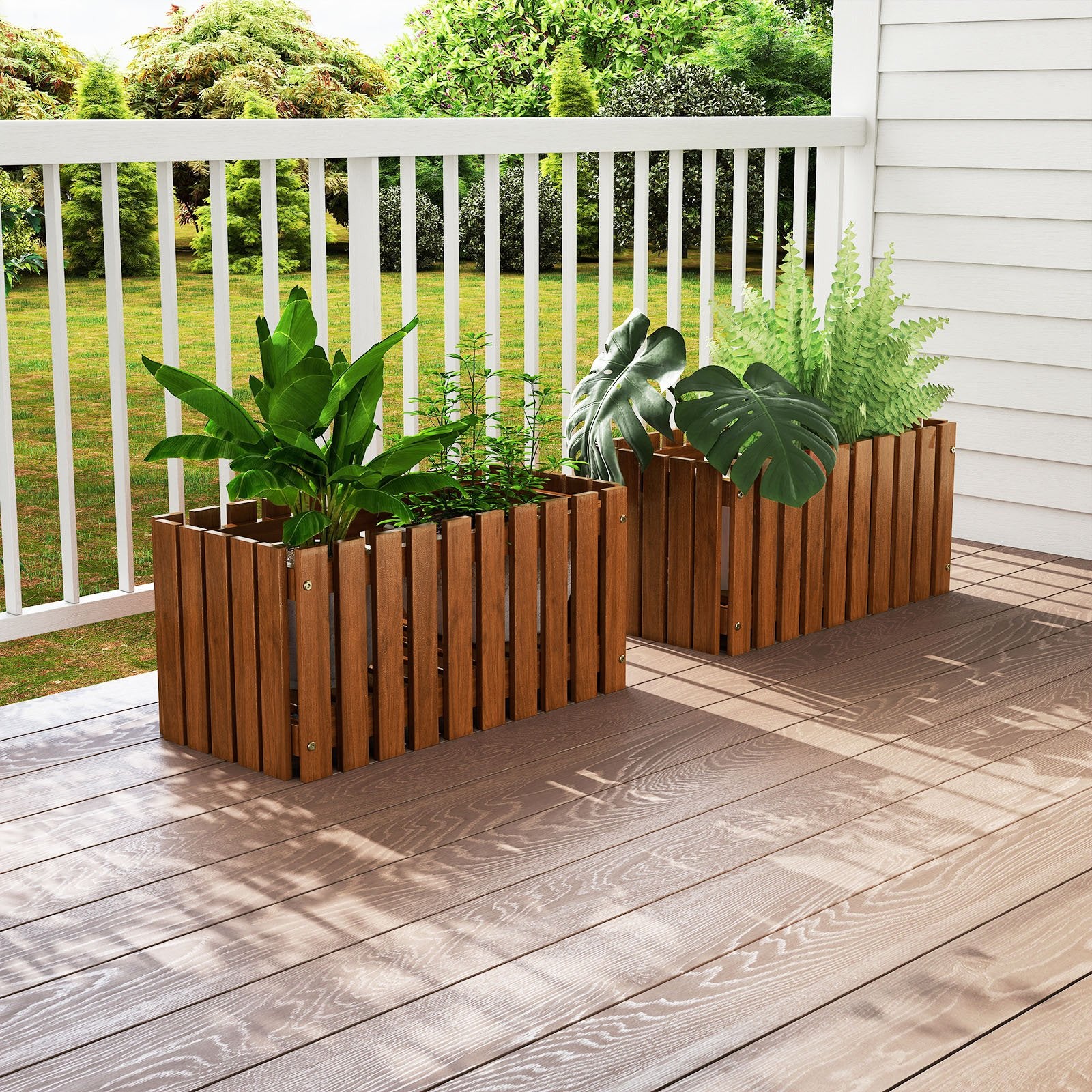 ● Versatile Use: This solid wood patio furniture serves as a flower box to display ornamental pots or as a planter box cultivating a mini garden directly in soil such as flowers herbs vegetables requiring a liner for planting (not included).