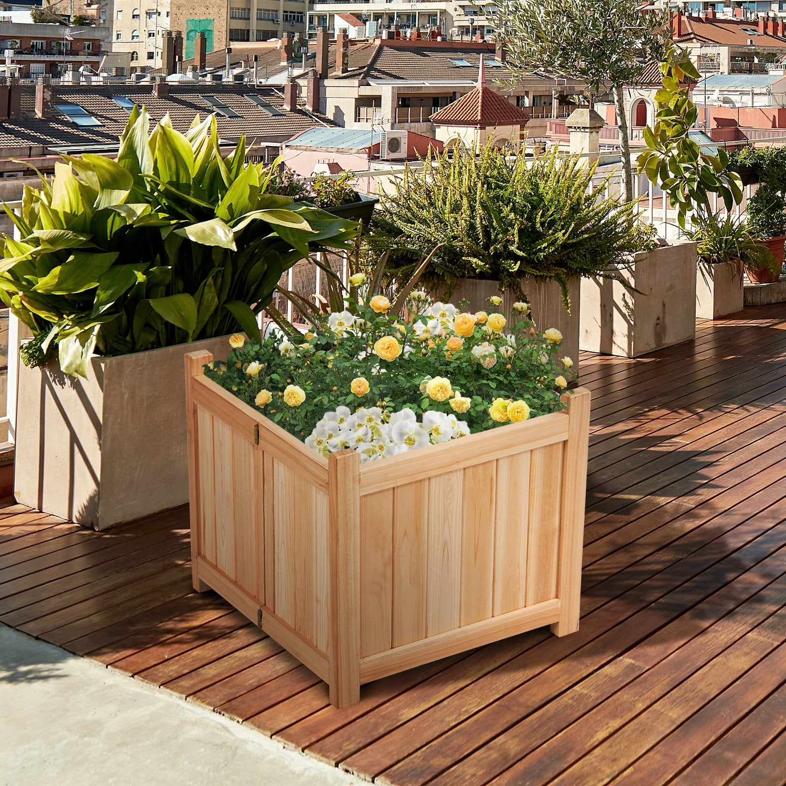 - Wood Slats For Plant Ventilation: The planter box is constructed of several wood slats on four sides. There is a slight gap between the slats for plant ventilation.