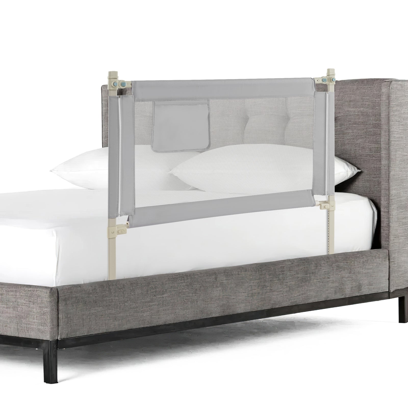 Toddler Bedrail with Side Pocket and 24 Adjustable Heights-Gray