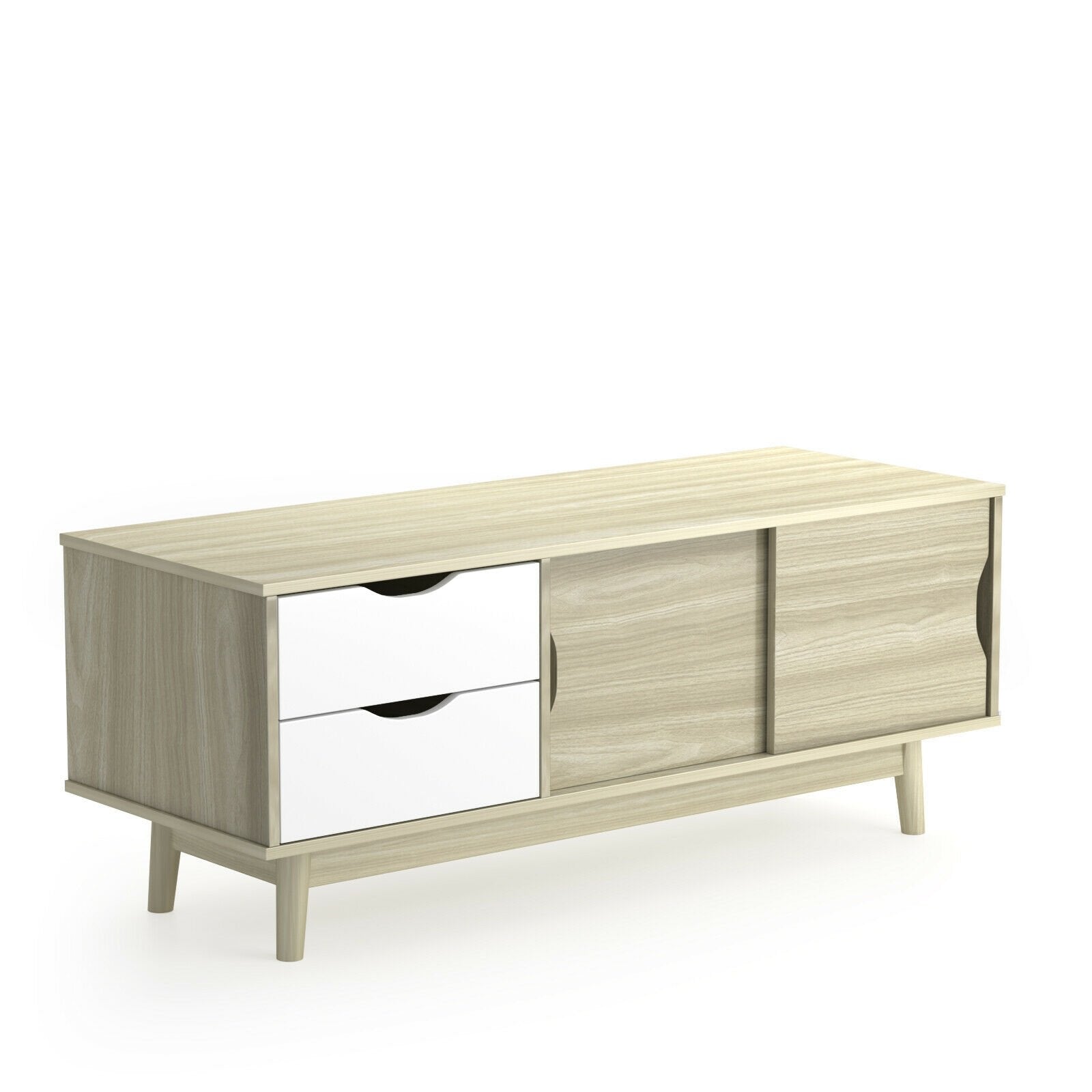 ● Ample Storage Space: 2 enclosed drawers with groove handles can be used to classify your daily needs and store them in order. Plus a large storage cabinet with 2 sliding doors for you to put all sundries and multimedia equipment and maximizes your room space.