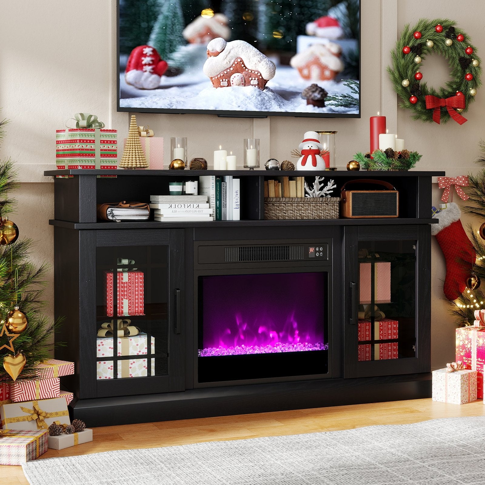 TV Stand with Electric Fireplace LED Lights and Remote Controls for TVs Up to 40 Inch-Black
