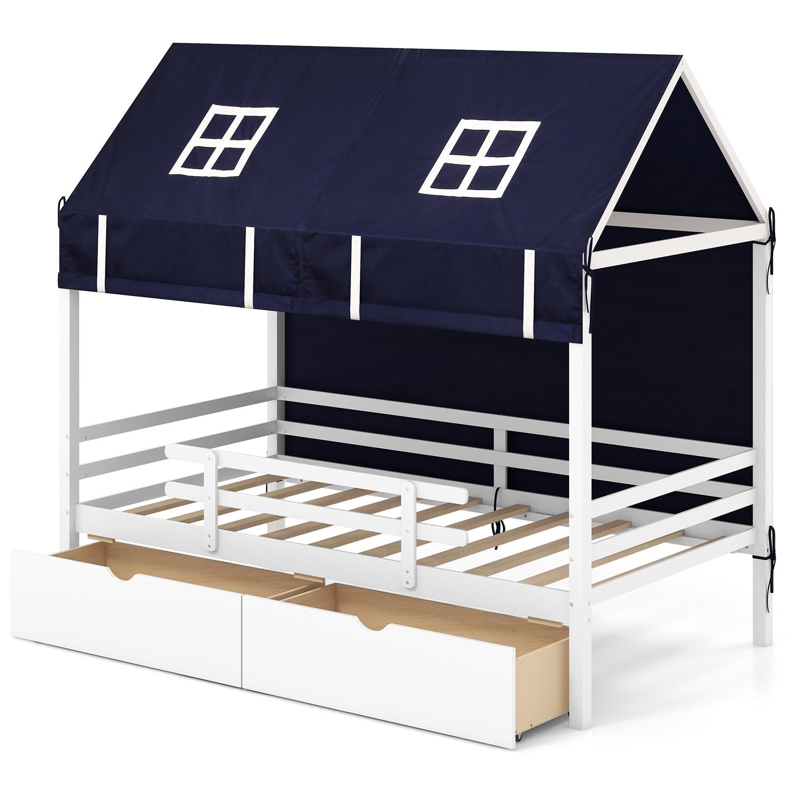Twin House Bed with Tent and 2 Storage Drawers for Kids-White