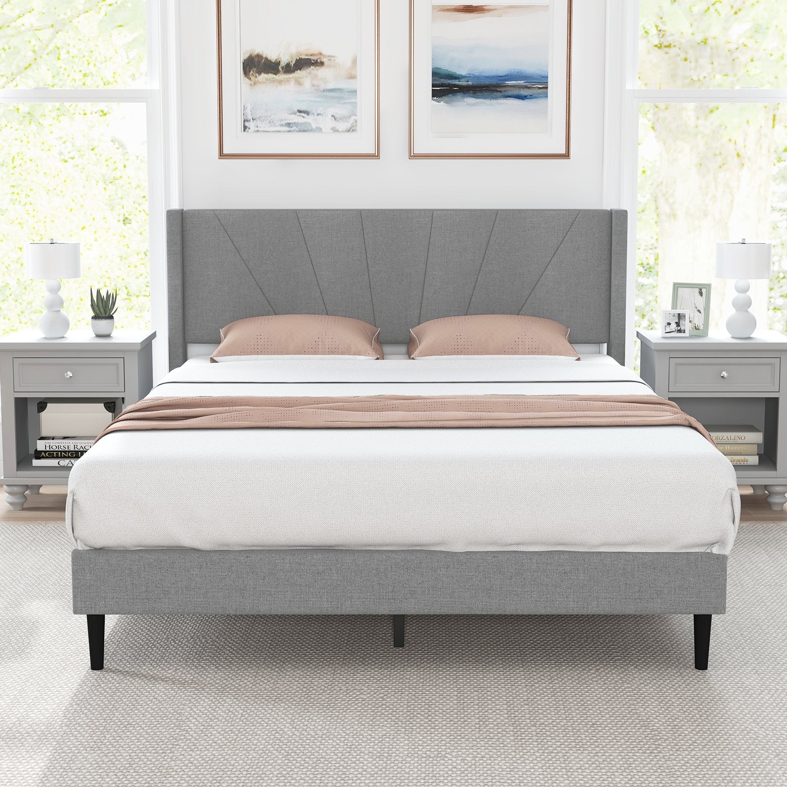 ● Premium Linen Upholstery: Crafted with a breathable and soft linen-textured fabric this twin/queen bed ensures a luxurious and inviting ambiance. The soft-filling materials contribute to a serene night's sleep.