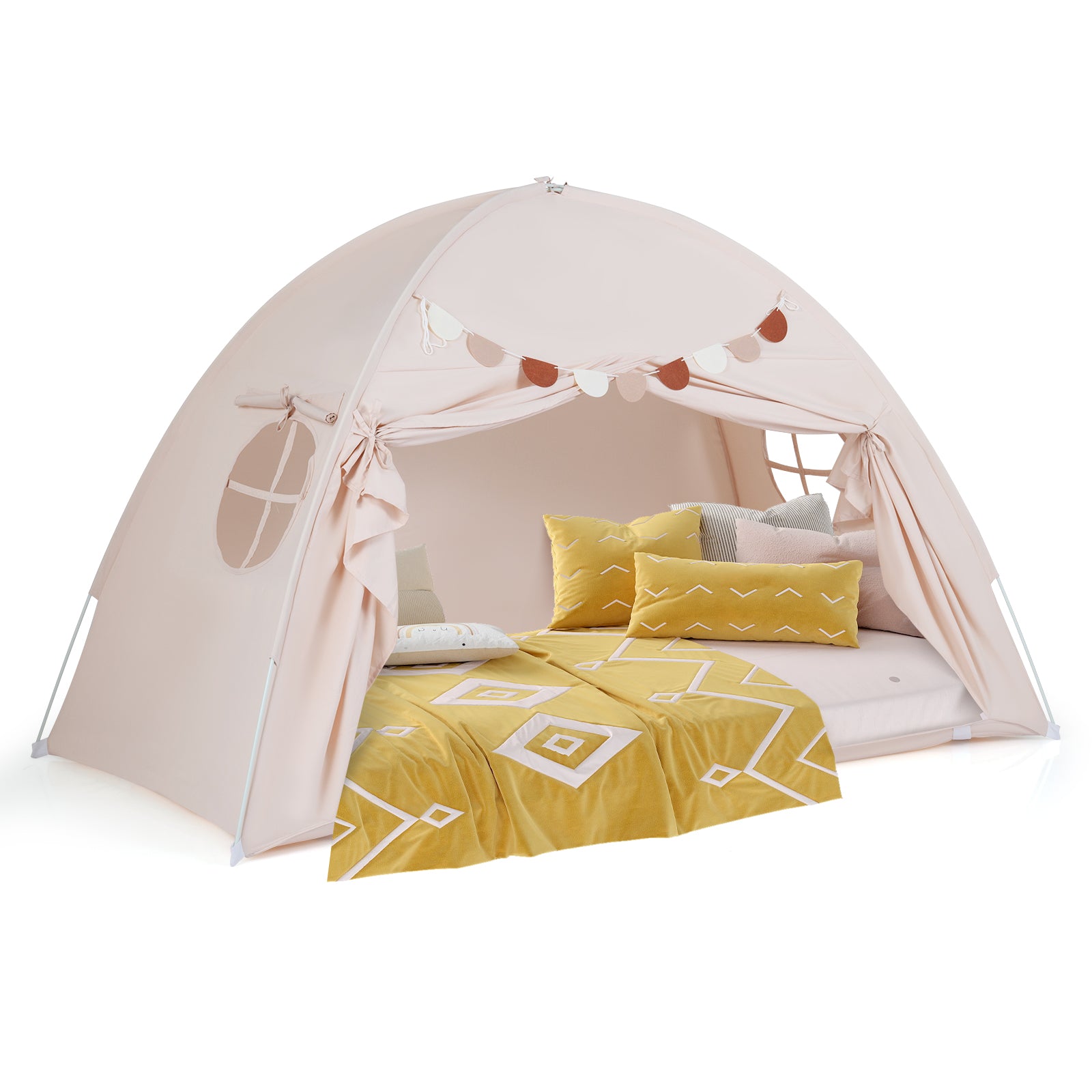 Twin Size Indoor Canopy Tent for Kids with 2 Window and Suits 3+-Beige
