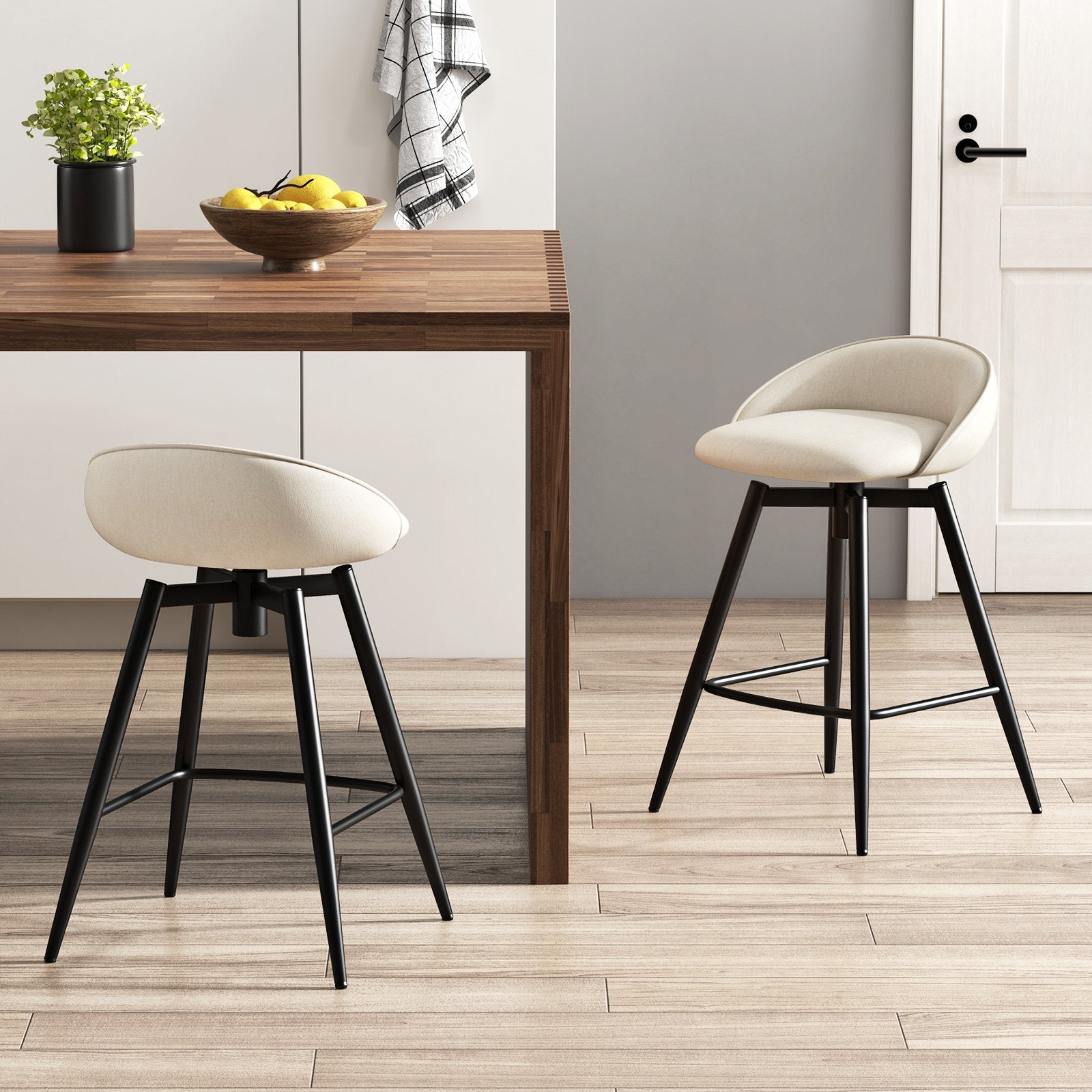 ● Swivel Seat Design: The 360° swivel seat is flawlessly combined with metal support legs ensuring a stable smooth and low-noise rotation. Suitable for social activities in various directions the bar stool set offers great flexibility.