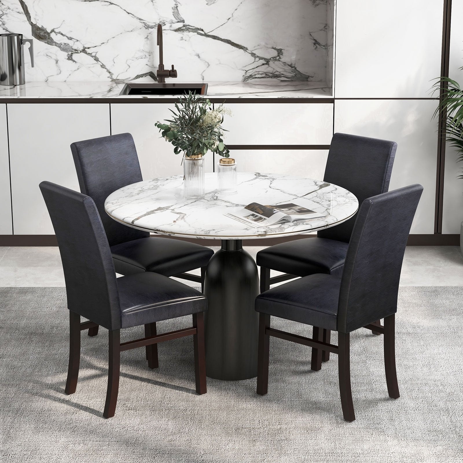 ● Comfortable Seating: With high-density sponge filling in the backrest and the seat the upholstered dining chairs set provides you with comfortable relaxing experience. Besides the PU leather cover is smooth and offers you nice touch.