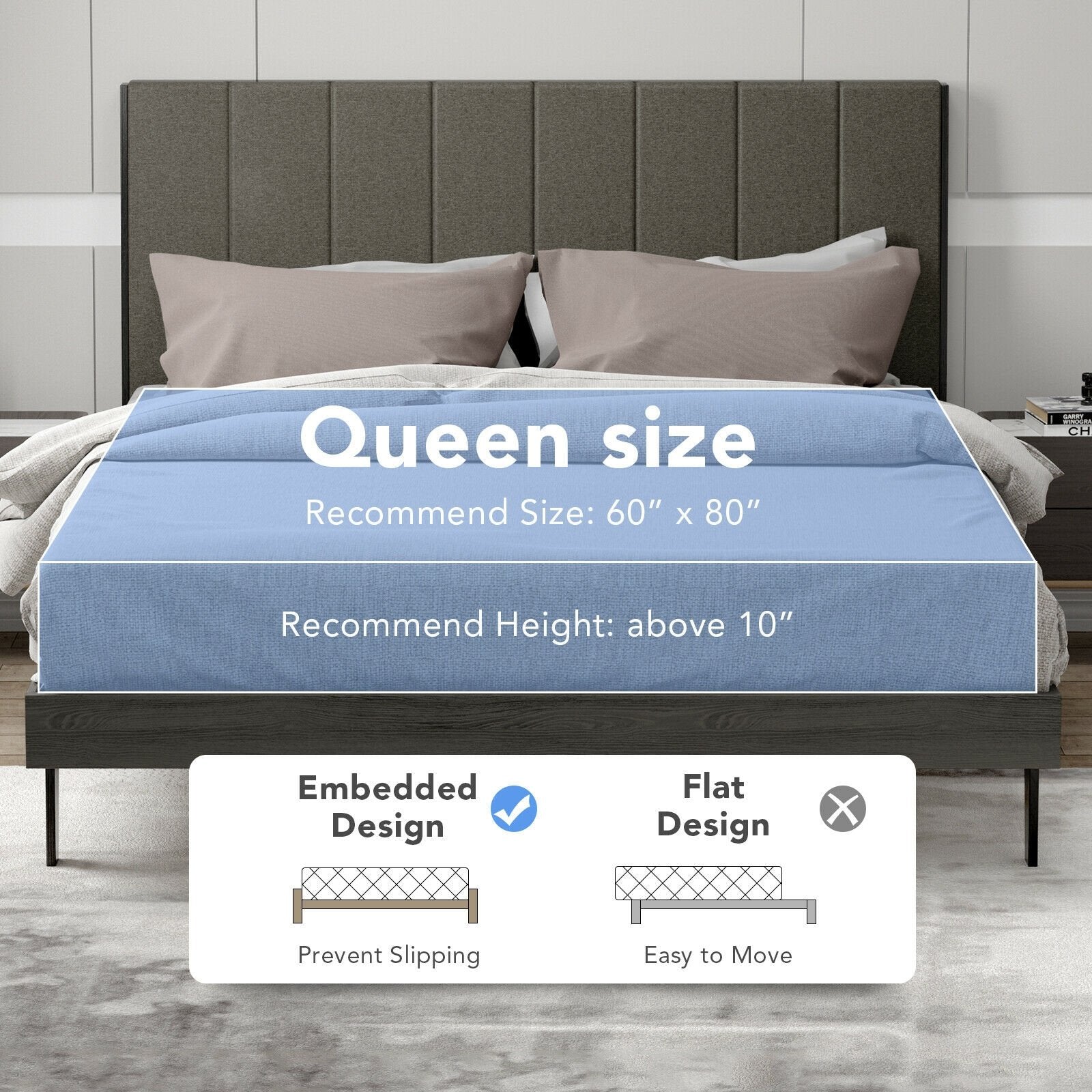 Queen Size Upholstered Bed Frame with Tufted Headboard