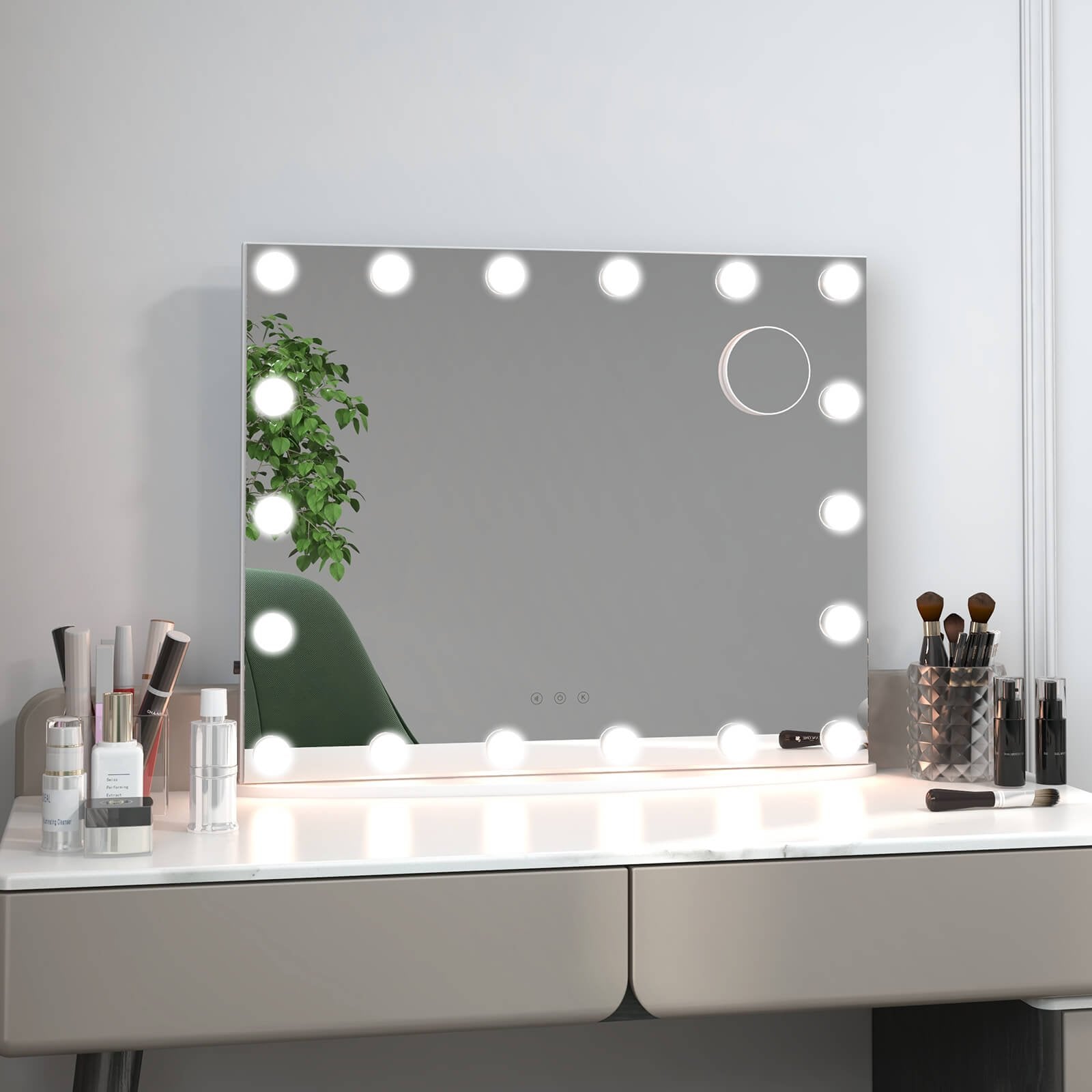 ● 18 LED bulbs surround the mirror for better lighting