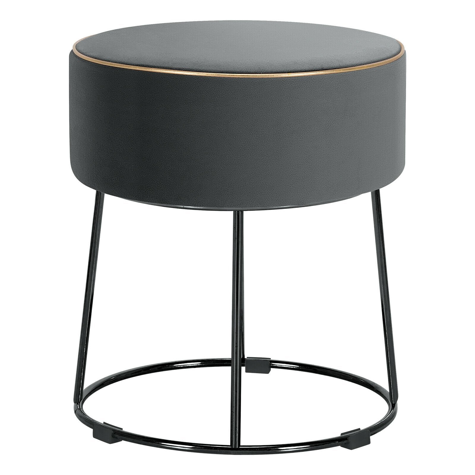 Round Velvet Footrest Stool Ottoman with Non-Slip Foot Pads for Bedside-Gray