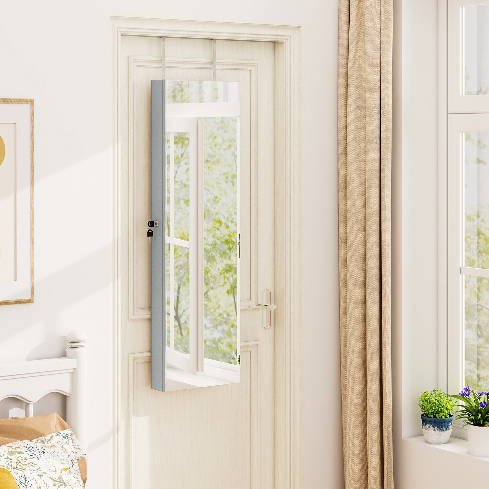 Wall And Door Mounted Mirrored Jewelry Cabinet With Lights-Black