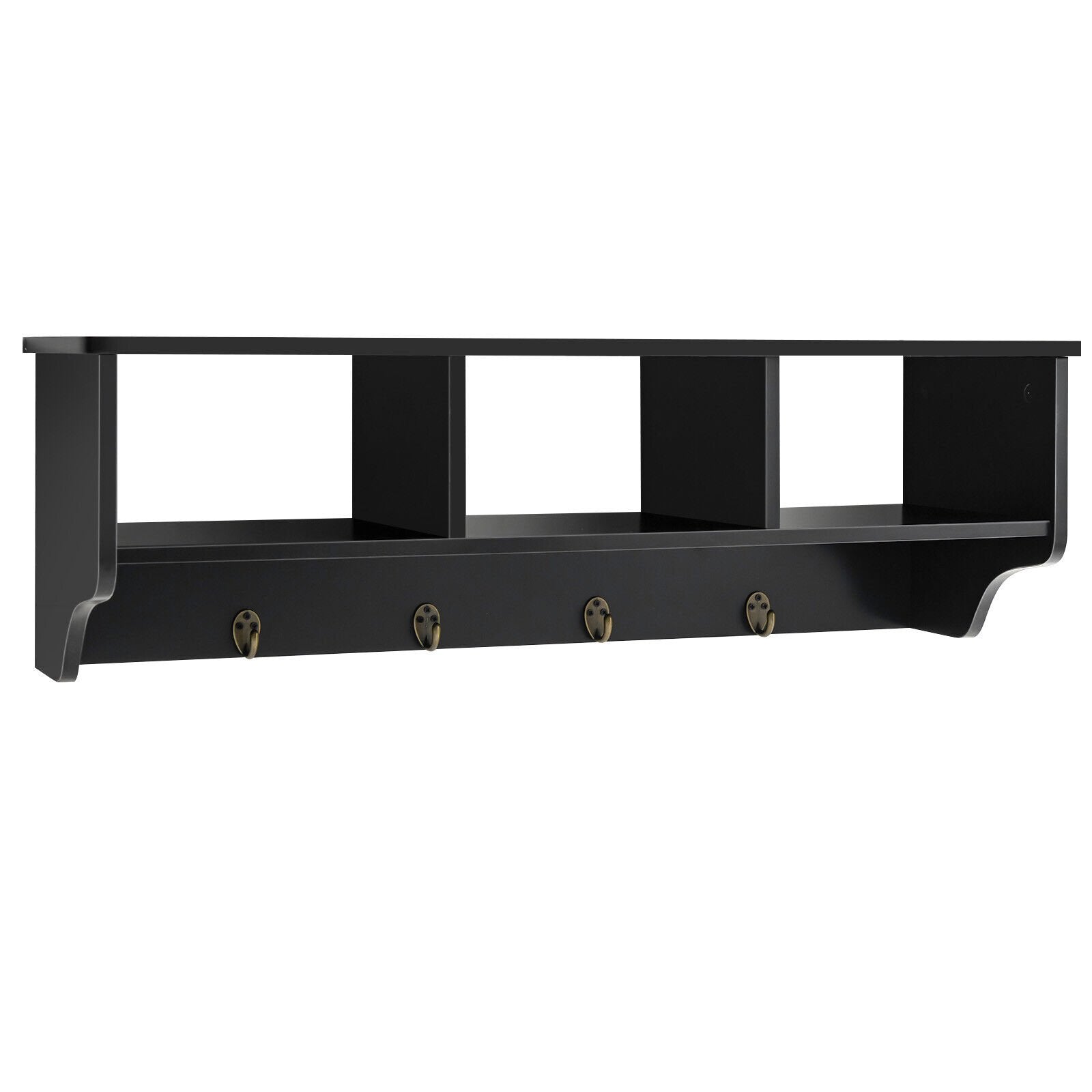Wall Mount Cubby Organizer Hooks Entryway Storage Shelf-Black