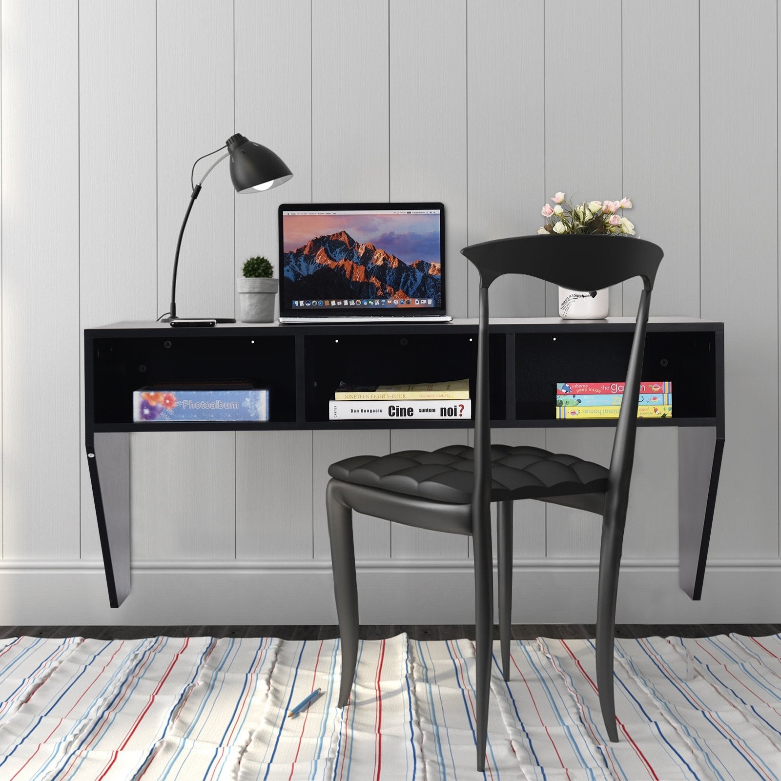 Wall Mounted Floating Sturdy Computer Table with Storage Shelf-Black