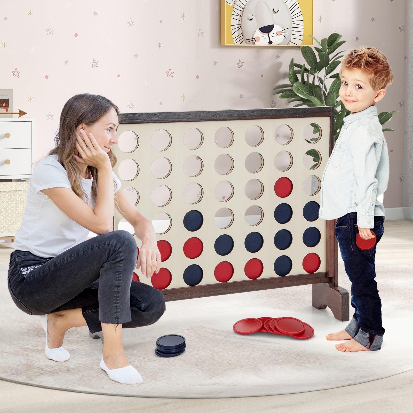 ● Enhanced Durability: Engineered for long-lasting fun the wooden jumbo 4-to-score game is equipped with 42 durable PP chips (21 red + 21 white). Moreover the solid plywood game board and natural pine wood legs endure entertainment across the years.