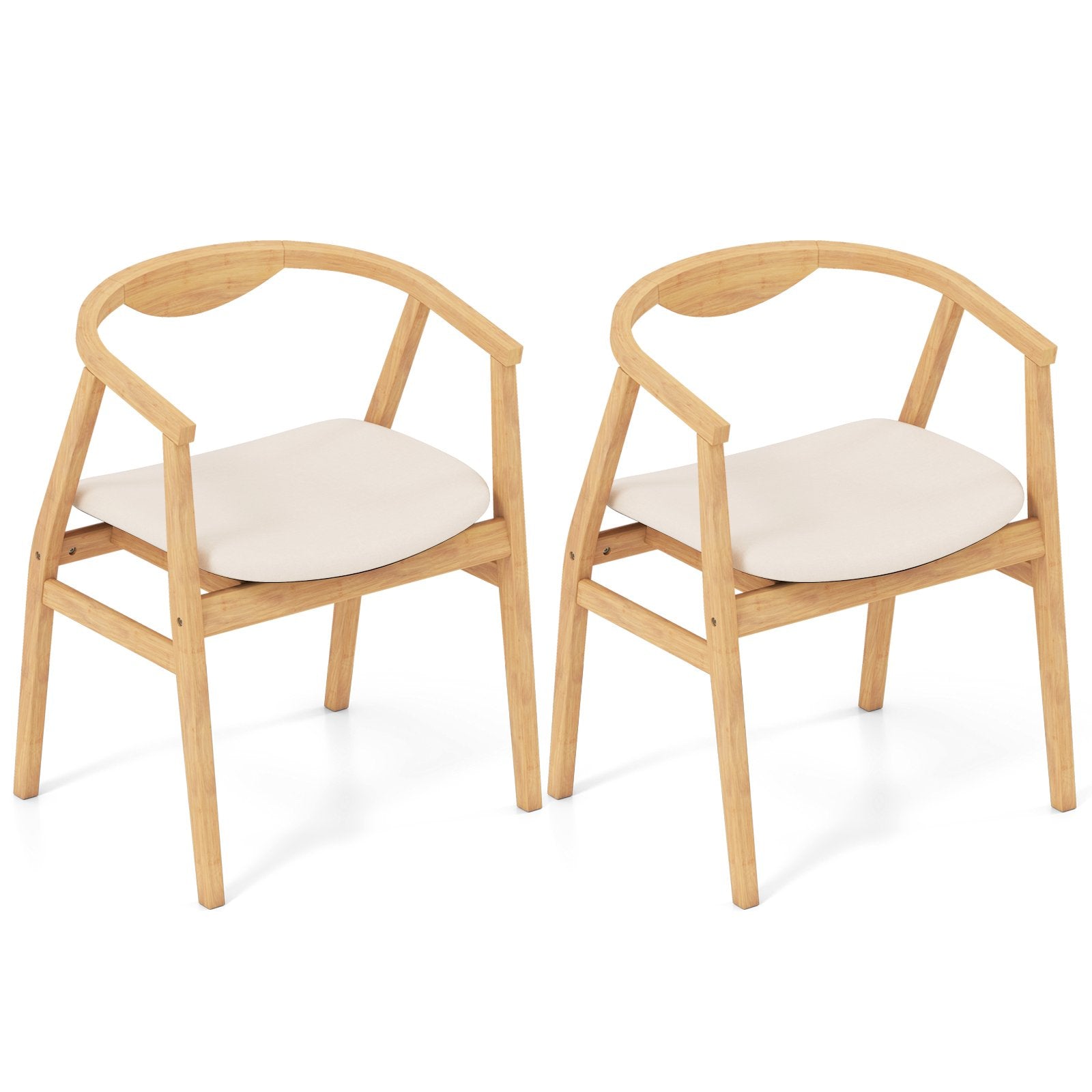 Wooden Bamboo Accent Chair with Armrest and Curved Backrest-Natural