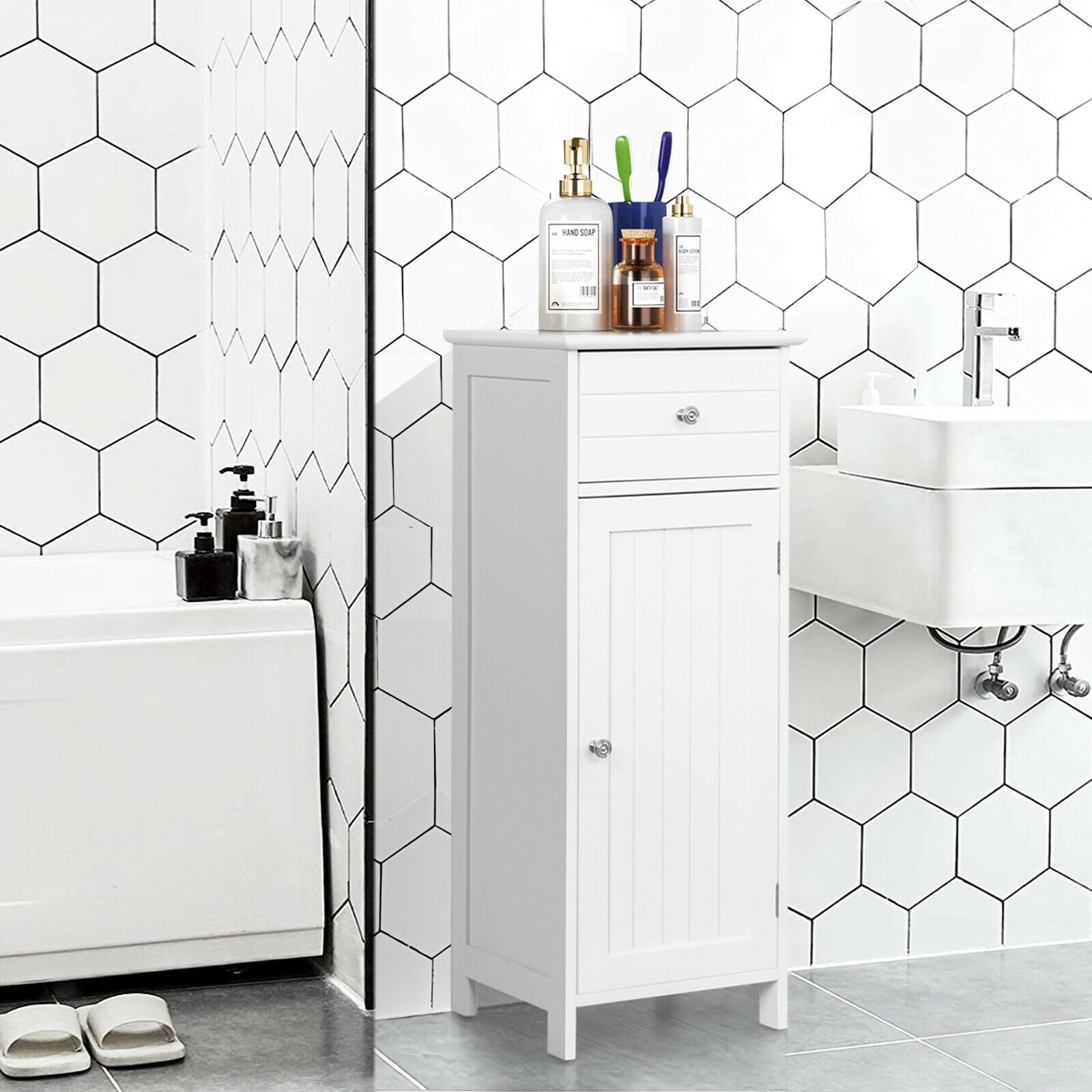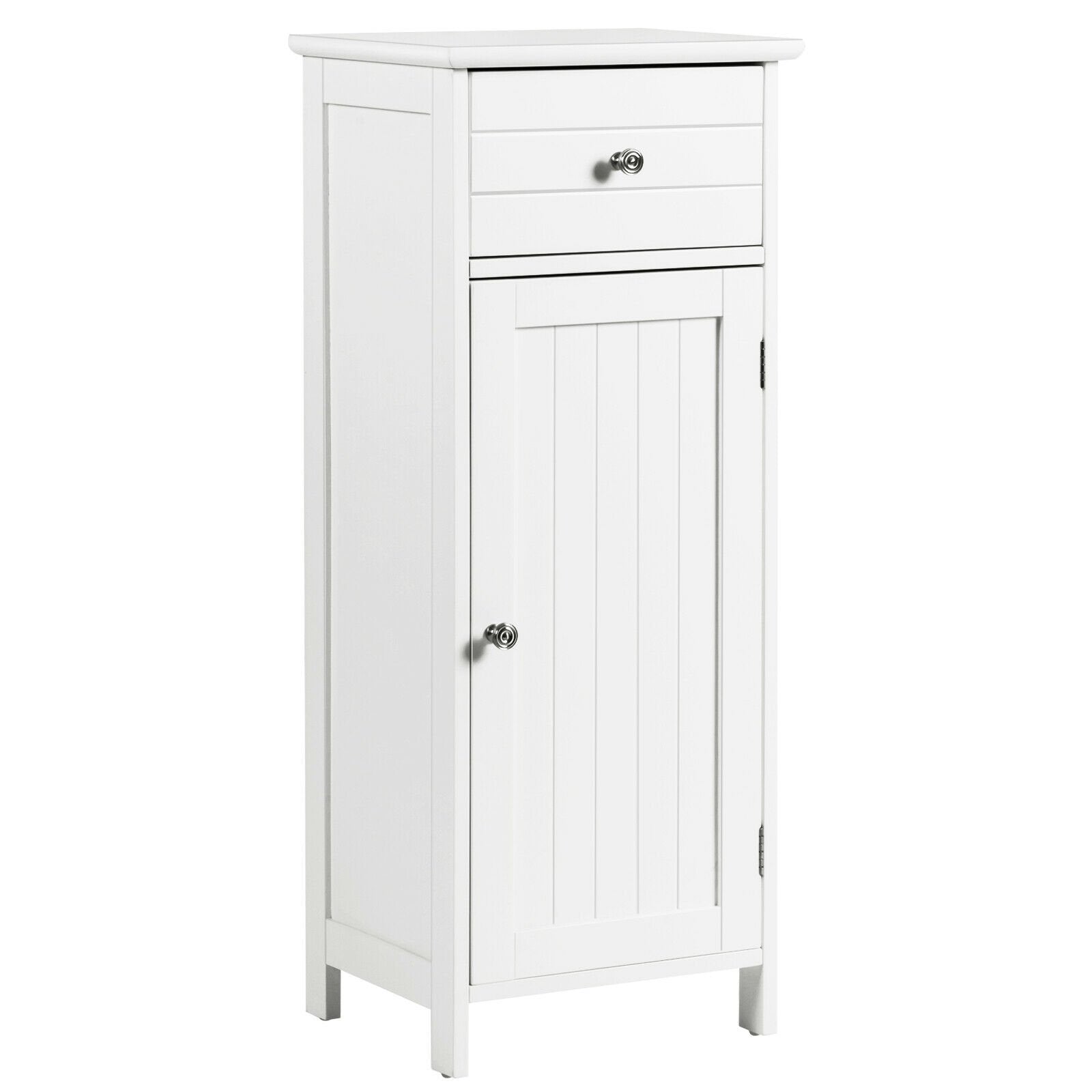 Wooden Bathroom Floor Storage Cabinet with Drawer and Shelf-Black