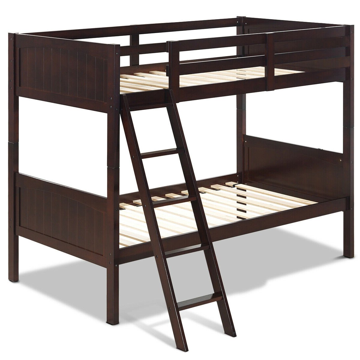 Twin Size Wooden Bunk Beds Convertible 2 Individual Beds-Brown