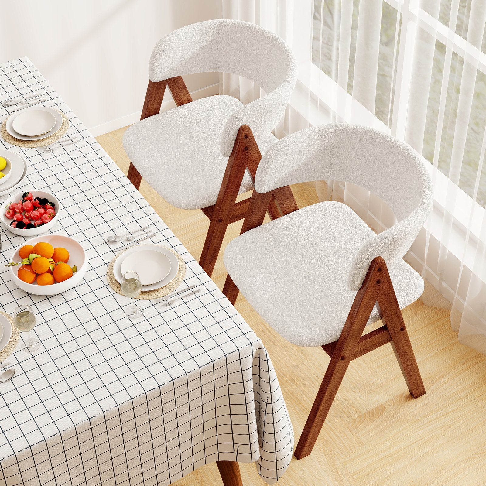 Wooden Dining Chair Set of 2 Mid-Century Modern Sherpa Upholstered Kitchen Dining Room Chairs-Black