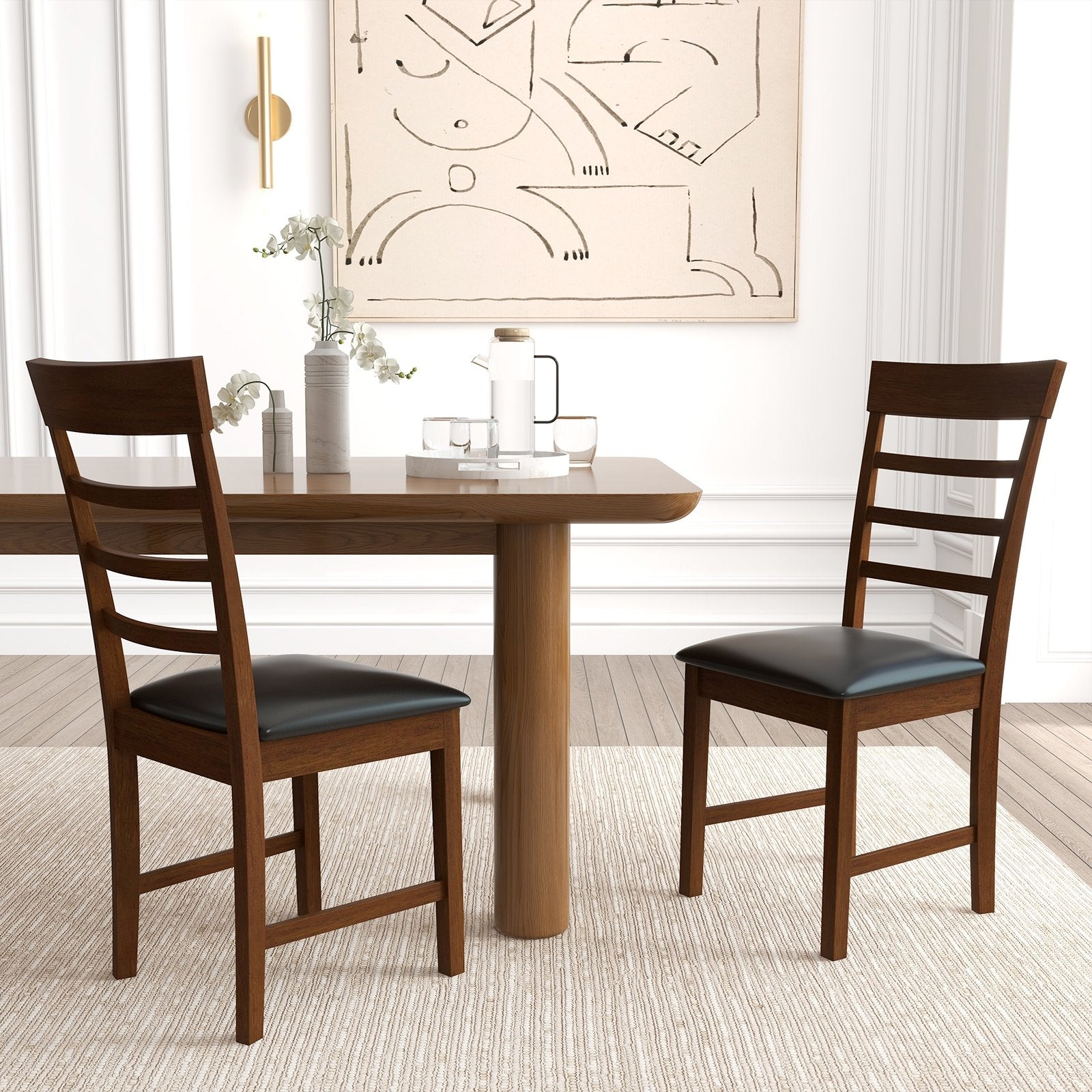 ● Versatile Use: Combining vintage oak-colored wood with sleek black leather these accent chairs boast a classic yet contemporary appearance that enhances any dining room decoration. It is suitable for various occasions from casual family dinners to more formal gatherings.