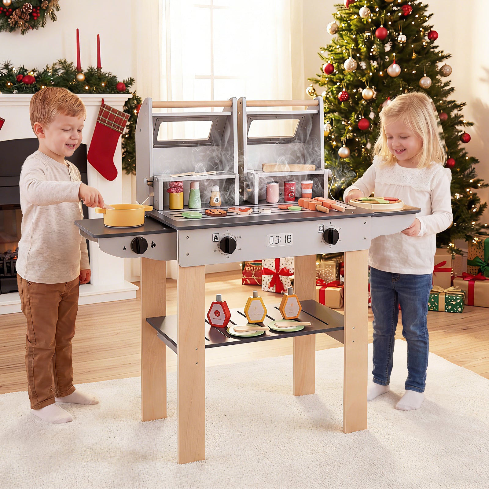 ● 2 BBQ grills with see-through windows add fun by allowing kids to watch food cook