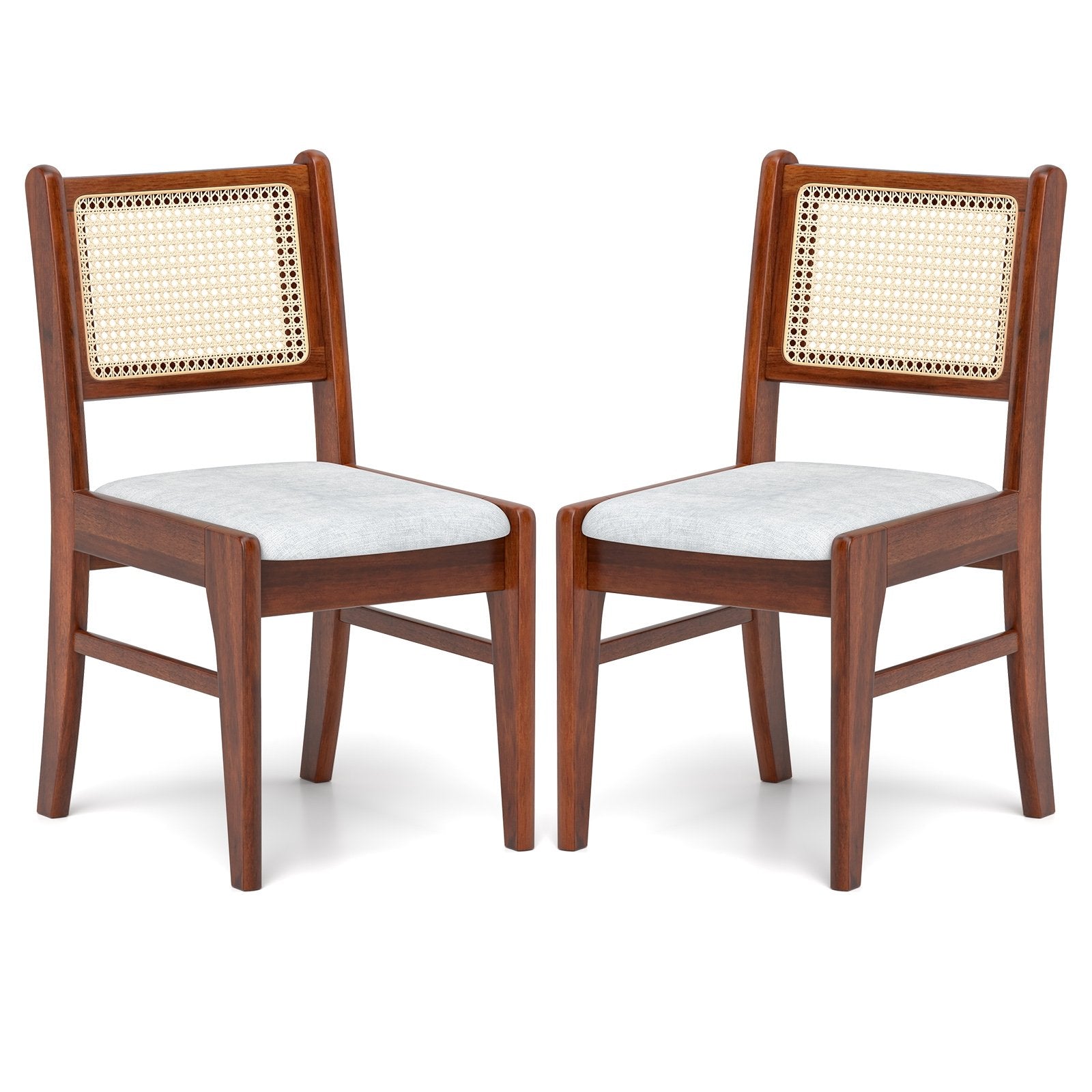 Wooden Kitchen Chairs with Cane Back Rubber Wood Frame and Padded Seat-Coffee